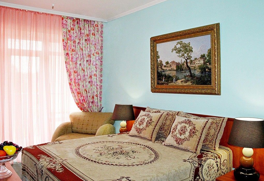 В особенном ключе оформлены просторные двухкомнатные номера, общей площадью более 45 кв.м, что позволит насладиться, с первой минуты до последней, роскошной жизнью. Именно таковую обещают теплые кремовые тона дизайнерского интерьера. Шикарную спальную зону дополняет комфортная гостиная. Роскошный вид, открывающийся из окон номера – еще один приятный бонус. Ванная комната: площадь 7 кв.м., раковина, биде, унитаз, джакузи, ванна, душевая кабина. Балкон: мягкая мебель из ротанга.