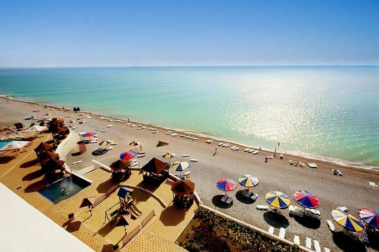 Собственный пляж отеля оборудован зонтами и лежаками. Здесь есть возможность не только насладиться пляжным отдыхом и купанием в Черном море, но и взять напрокат лодки или гидровелосипеды, а еще – устроить себе катание на скутерах, ватрушках, бананах.