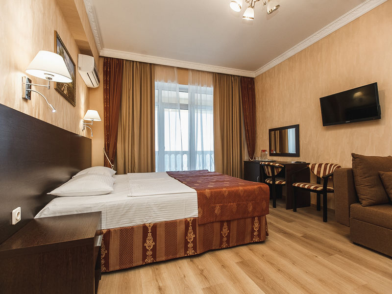 в части номеров предусмотрено только 1 доп. место; номера в корп. В обращены на сторону моря, номера с видом на море находятся в корп. А, Б, Г, номера с видом на горы - в корп. АУслуги и удобства