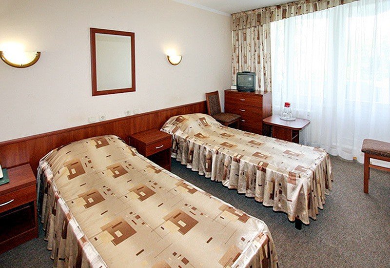 Номер с балконом, оформленный в светло-бежевой цветовой гамме, состоит из спальни, собственной ванной комнаты и оснащён всем необходимым для комфортного отдыха. В санатории используется централизованная система охлаждения – фанкойл.
