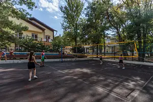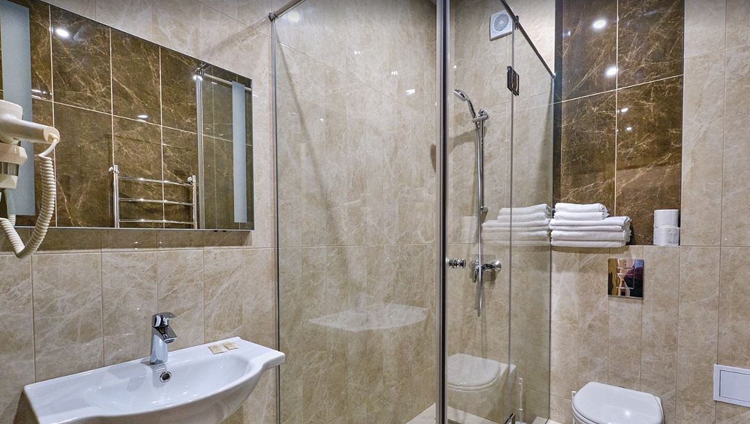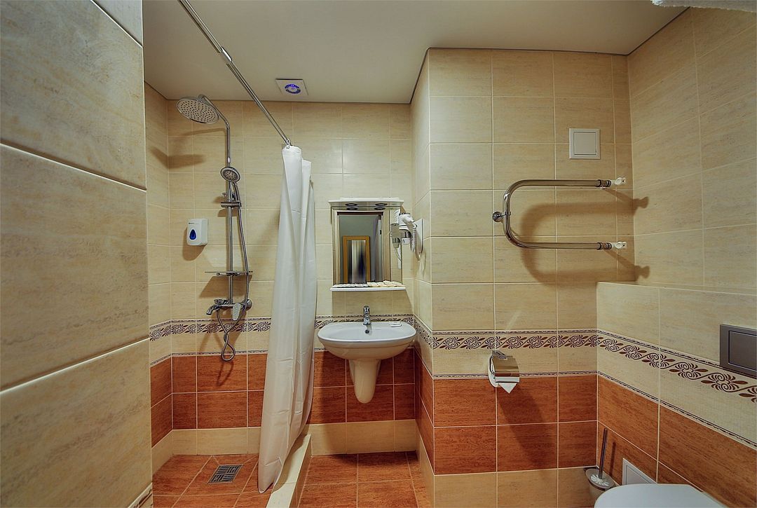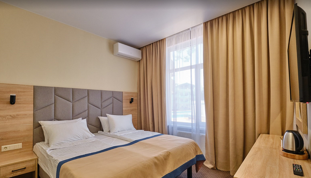 Дизайн отделки номеров может отличаться от указанного на фото. Функционально оснащенный шкаф в коридоре обеспечивает достаточно места для вашего багажа. В ванной комнате установлен душ, в комнате мини-холодильник. Во всех номерах этой категории есть фен, телевизор, сплит-система. Мы предоставляем утюг и гладильную доску на этаже. Полотенца меняют каждые 3-4 дня, а постельное белье - еженедельно. Уборка осуществляется ежедневно (с 08:00 до 15:00). Номера расположены в 1 корпусе на трех этажах. Все номера с балконами. Напротив зданий спортивные бассейны.Услуги и удобства