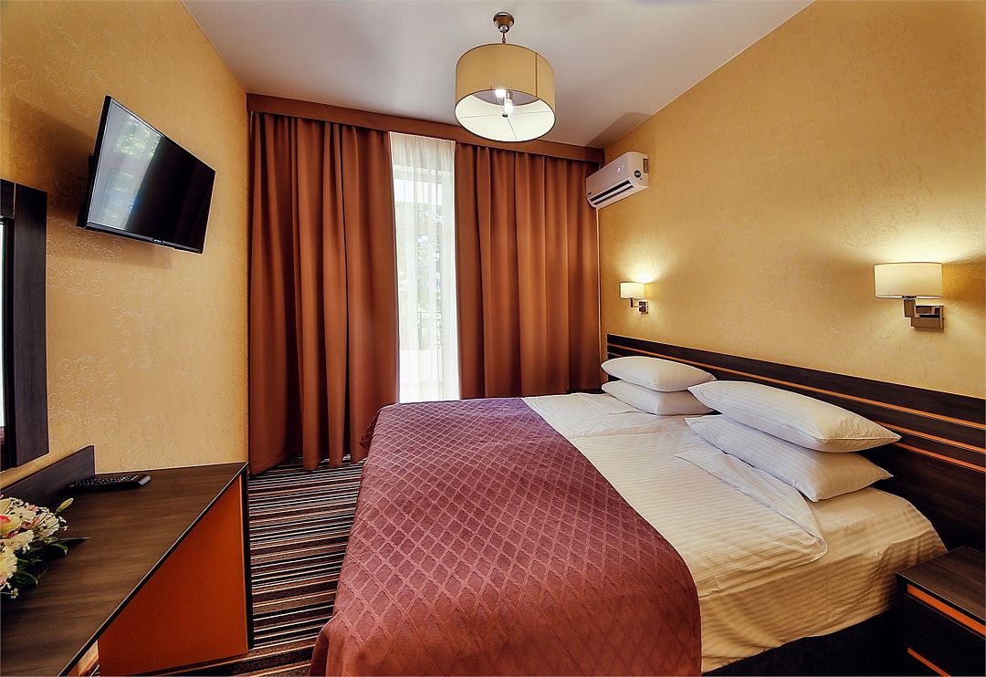 Комфортный номер с балконом, в спальне две кровати, которые соединяются топпером в двуспальную кровати, диван-кровать; могут разместиться до 3 человек. В ванной комнате душ, есть холодильник.