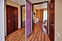 Дизайн отделки номеров может отличаться от указанного на фото. Современные апартаменты из трех комнат занимают в общей сложности до 100 кв.м. и вмещают до 6 человек. Спальня состоит из двух односпальных кроватей (соединяются в двуспальную кровать топпером), телевизора и зоны «Рабочее место» с рабочей поверхностью, удобным стулом. Две гостиных зоны с диванами-кроватями и телевизорами. Обеденная и кухонная зона оснащена большим холодильником, электрической плитой с вытяжкой, раковиной, электрическим чайником и набором посуды. В ванной комнате установлен душ. В коридоре просторный встроенный шкаф. Во всех номерах этой категории есть фен и сплит-система. Мы предоставляем утюг и гладильную доску на этаже. Полотенца меняют каждые 3-4 дня, а постельное белье - еженедельно. Уборка осуществляется ежедневно (с 08:00 до 15:00). Номера расположены в корпусе 1,6 на 3 этаже. Все номера с балконамиУслуги и удобства