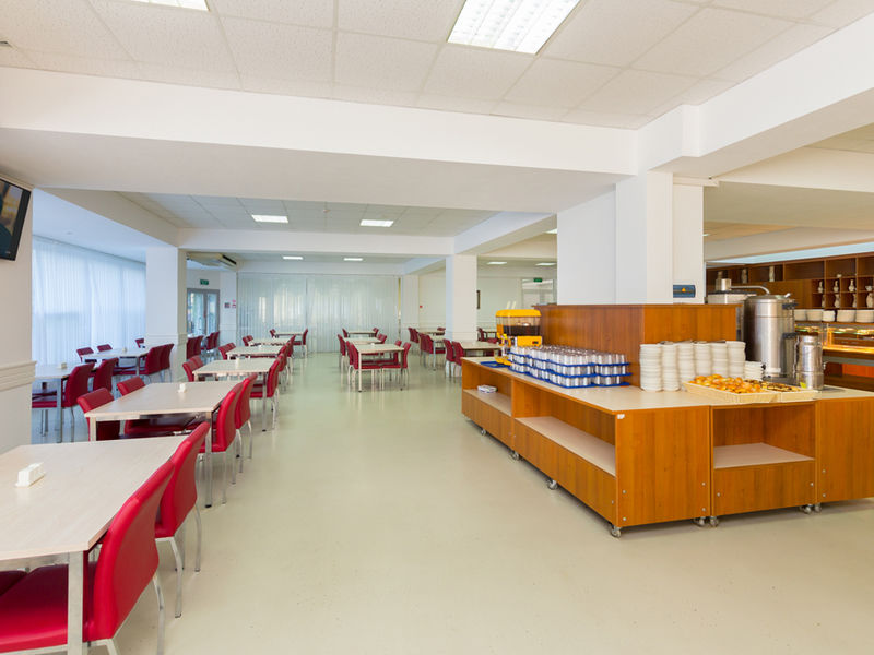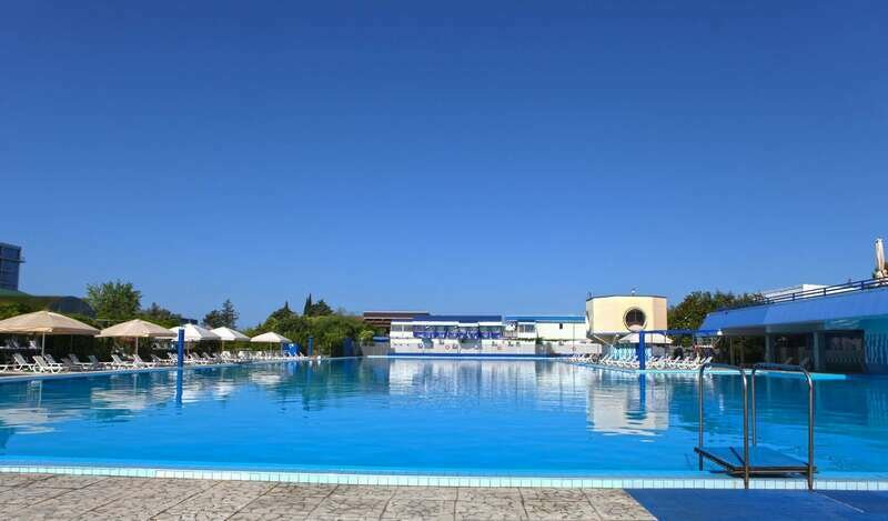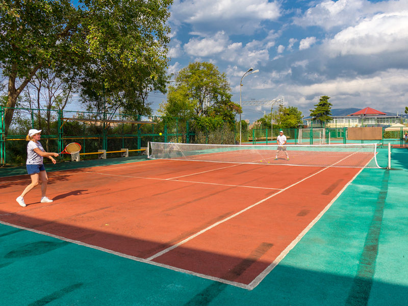 К услугам гостей санатория – превосходный бассейн с морской водой, тренажёрный зал и 7 открытых площадок для занятий волейболом, футболом, баскетболом, теннисом, стритболом, бадминтоном, настольным теннисом. Кроме этого, на территории «Коралла» работают банный комплекс, косметологический и массажный кабинеты, парикмахерская, салон красоты.