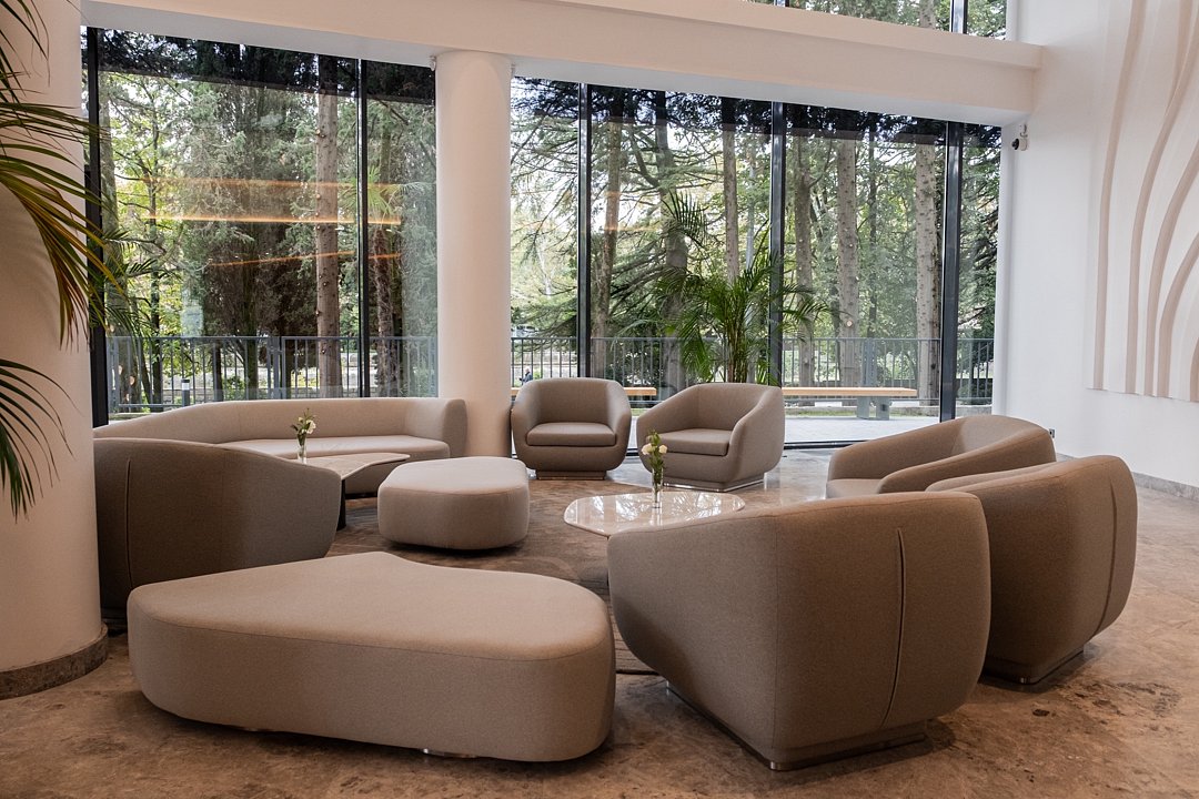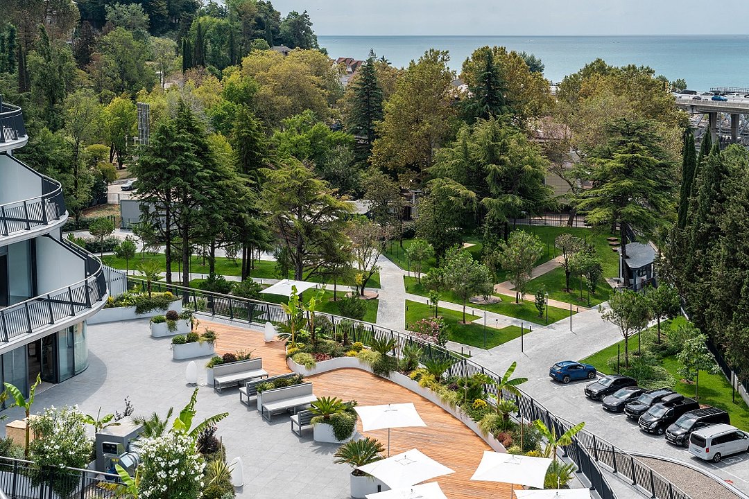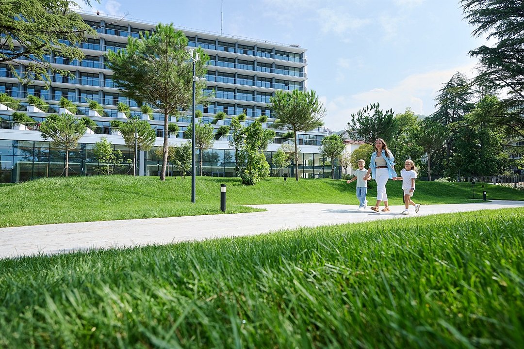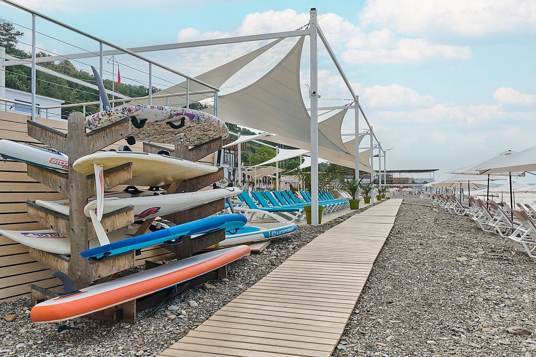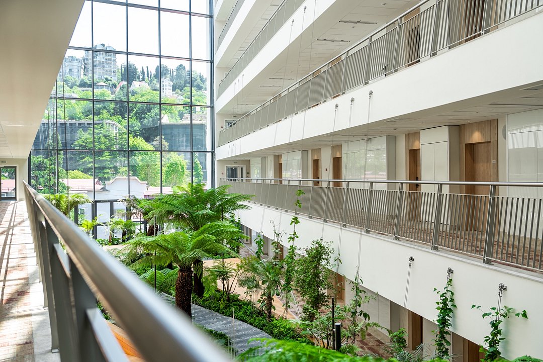 Зеленая территория санатория, зимний сад и приватный пляжный клуб с прекрасной инфраструктурой, включая школу серфинга, предлагают великолепные возможности для восстановления и релаксации на свежем воздухе.