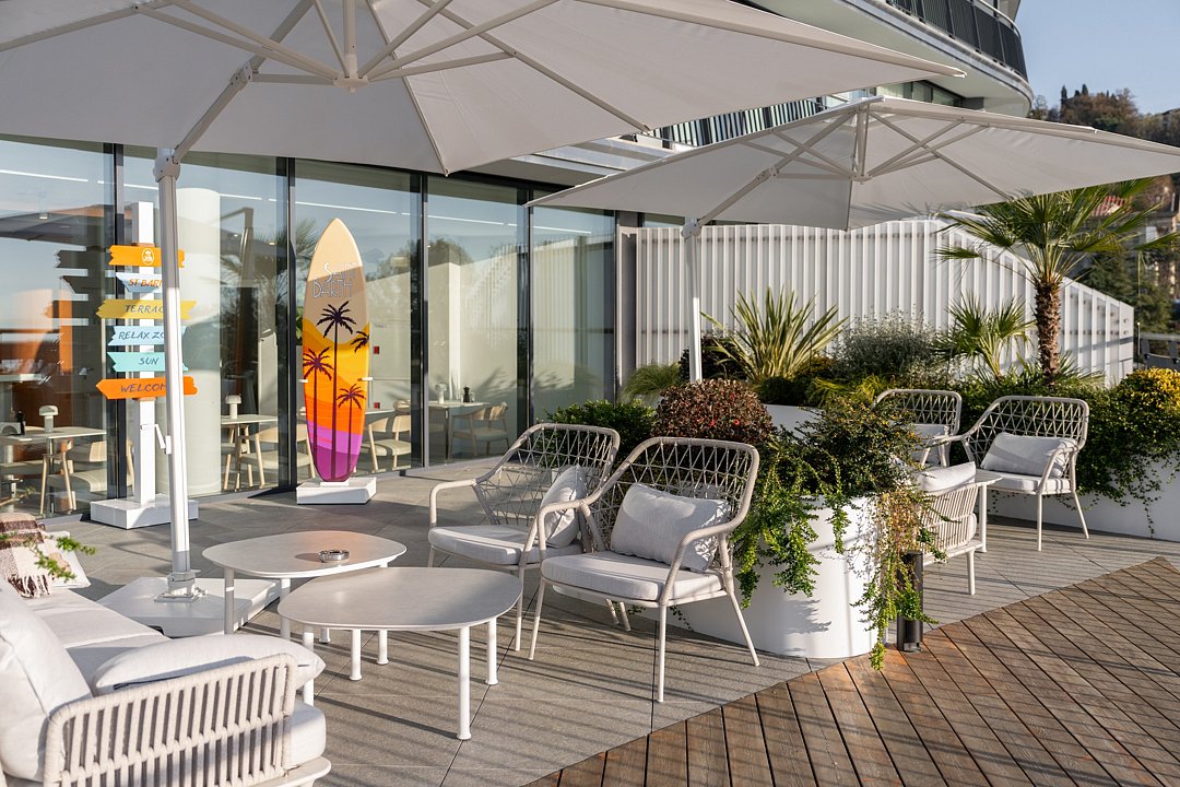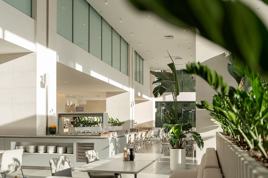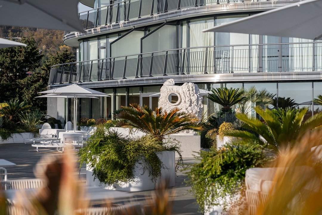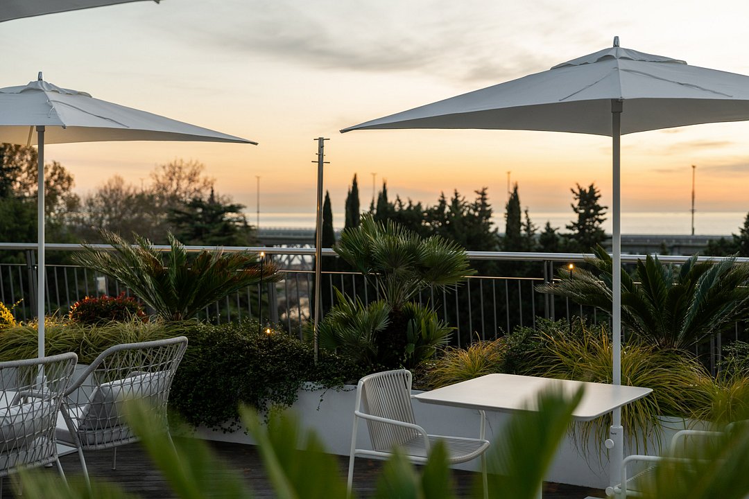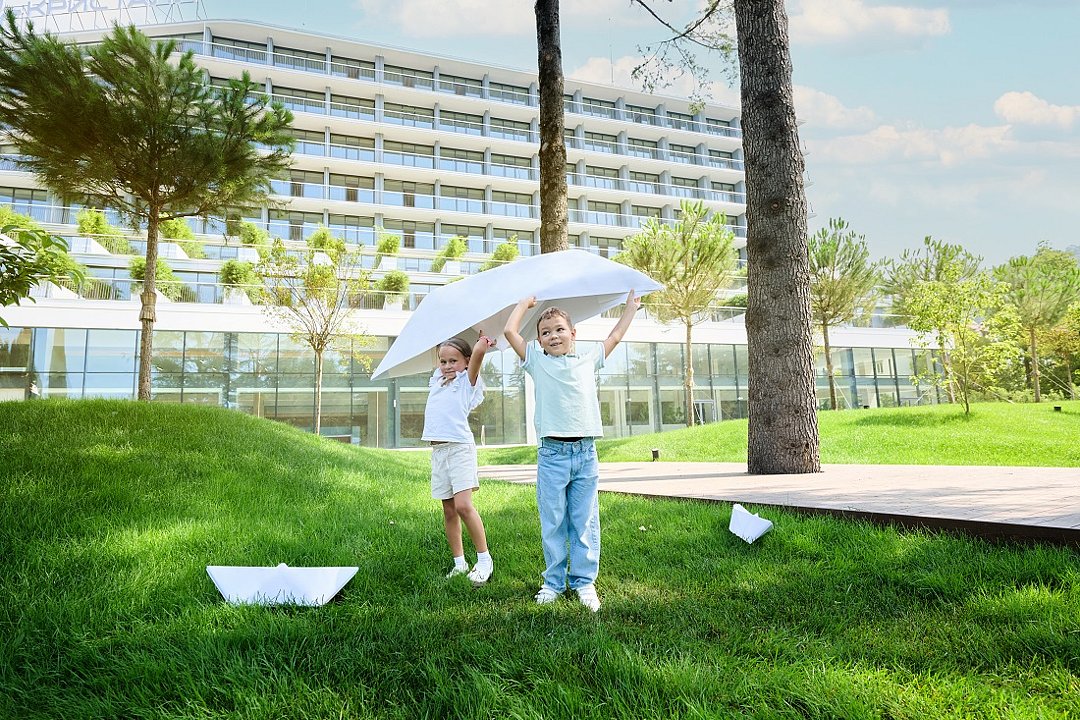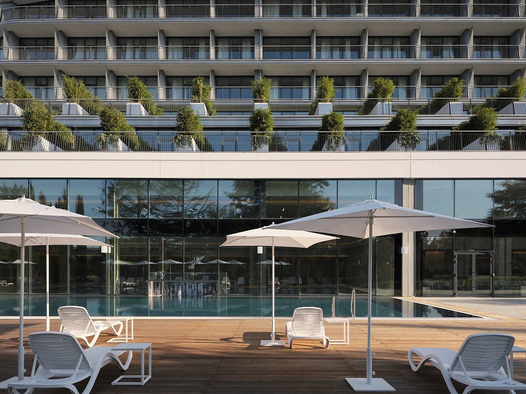 Зеленая территория санатория, зимний сад и приватный пляжный клуб с прекрасной инфраструктурой, включая школу серфинга, предлагают великолепные возможности для восстановления и релаксации на свежем воздухе.