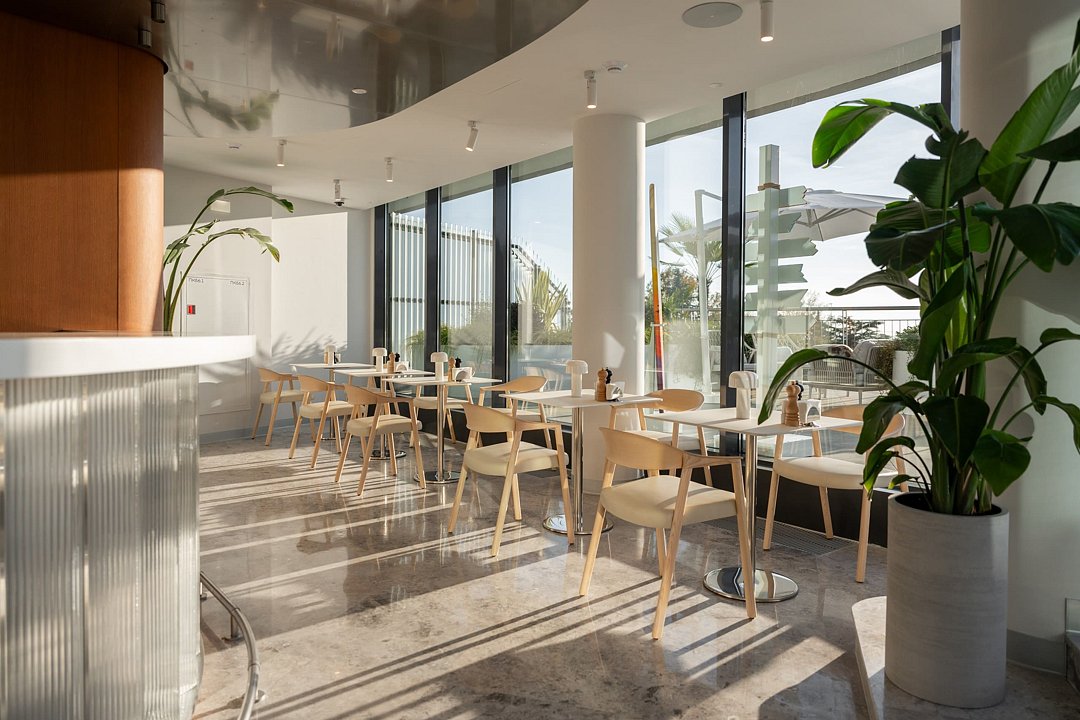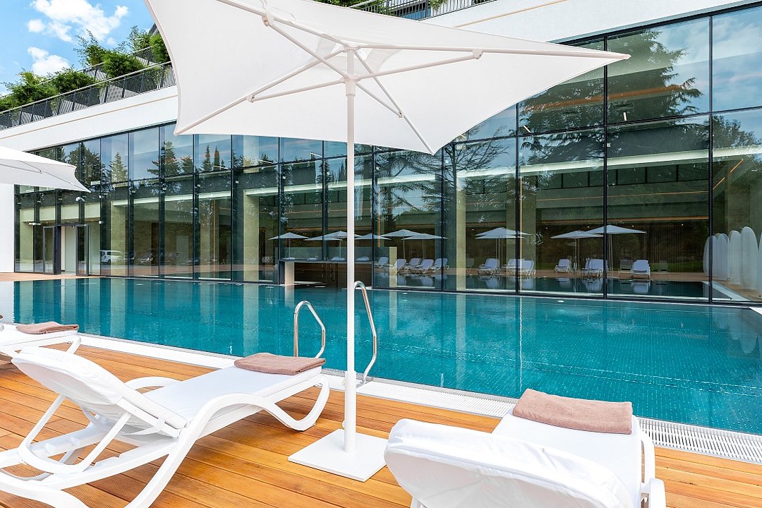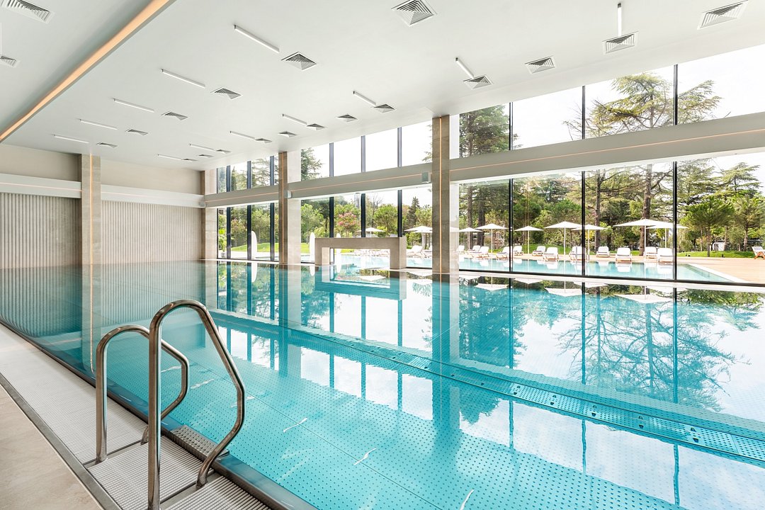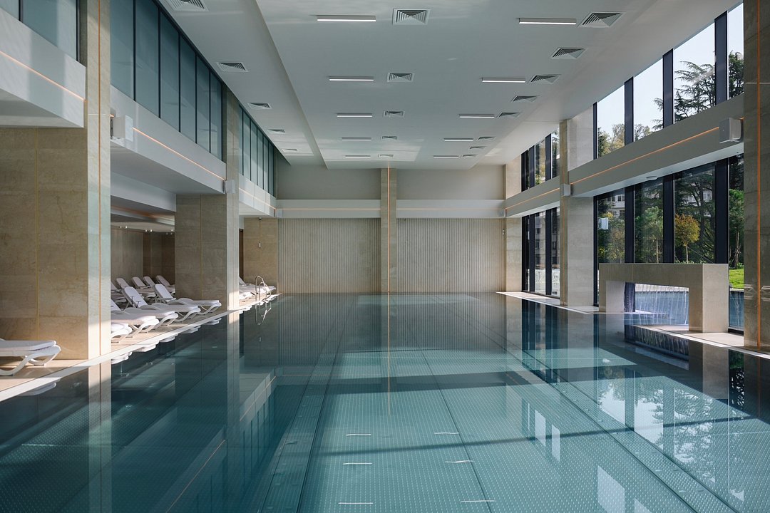 Акватермальный комплекс с разнообразными зонами для водных и оздоровительных процедур, включая сауну и хаммам, а также фитнес-центр, залы для групповых тренировок и йога-терраса обеспечивают все необходимые условия для поддержания физической активности.