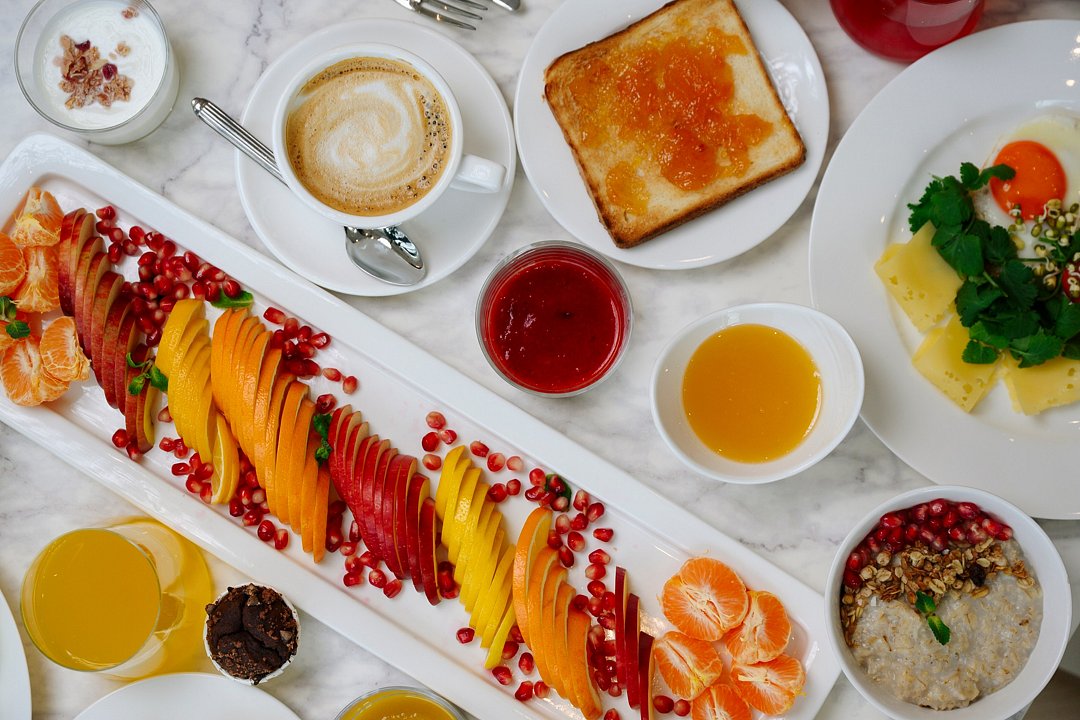 Тщательно продуманная гастрономическая концепция предлагает сбалансированное меню, богатое сезонными и местными продуктами, чтобы удовлетворить все потребности гостей. Особые блюда и напитки можно продегустировать в двух ресторанах, лобби-баре и фито-баре.