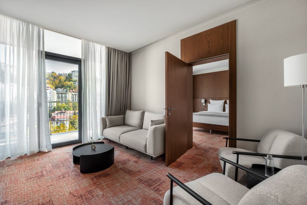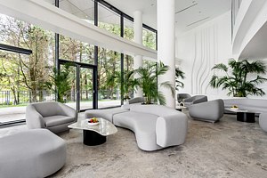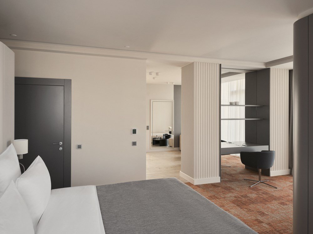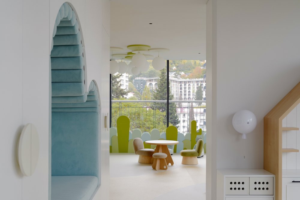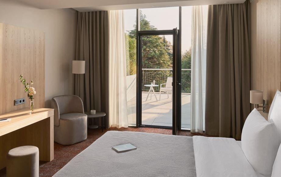 Архитектурное решение комплекса подчеркнуто бионическим дизайном, который способствует расслаблению и ощущению уюта. Все номера, от стандартных до роскошных Медицинских Сьюитов, оформлены с использованием натуральных материалов, что создает атмосферу спокойствия и гармонии с природой. Специальное внимание уделено нейроархитектуре, благодаря которой зонирование и освещение способствуют снижению тревожности и улучшению качества сна.