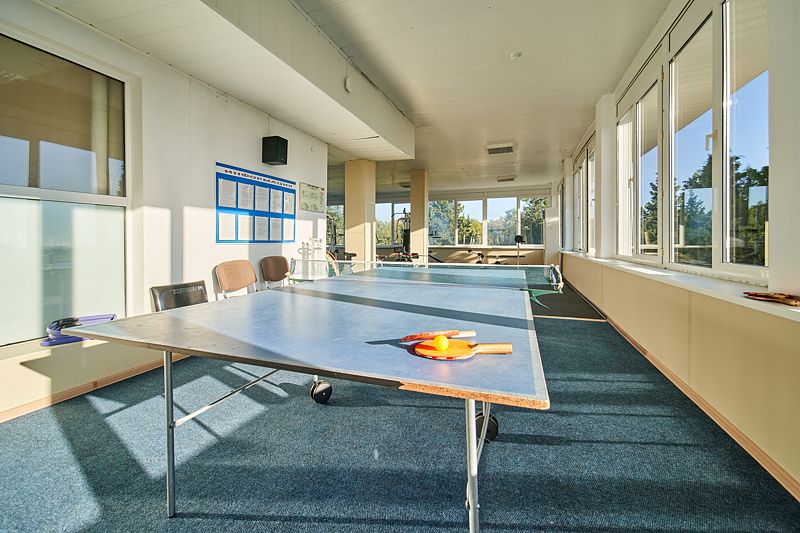 6 спальных корпусов на 400 койко-мест стоят прямо под огромными соснами, источающими аромат смолы. Столовая на 260 мест расположена на территории дендропарка. Здесь есть все для активного отдыха: тренажерный зал, танцевальный и концертный зал, волейбольная и баскетбольная площадки, футбольное поле, теннисный корт. Оборудованный пляж санатория «Лазурный берег» находится в 200-метрах от спальных корпусов. Есть аэрарий, прачечная, камера хранения.