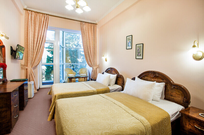 2 взрослых на основном местеВключен завтрак, обед и ужинЛучшая цена "Оздоровительная программа"ПодробнееВ стоимость входит: проживание в номере выбранной категории; 3-х разовое диетическое питание — завтрак, обед, ужин ("шведский стол"), по медицинским показаниям — дробное диетическое питание; санаторно-курортное лечение согласно выбранной программе и показаниям к санаторно-курортному лечению; пользование бассейном; пользование тренажерным залом; пользование маршрутами для терренкура; культурно-развлекательная программа; подключение к wi-fi в корпусах санатория; вызов такси, вызов скорой помощи, других специальных служб, экстренная медицинская помощь; сейфовые ячейки; пользование пляжем санатория.
