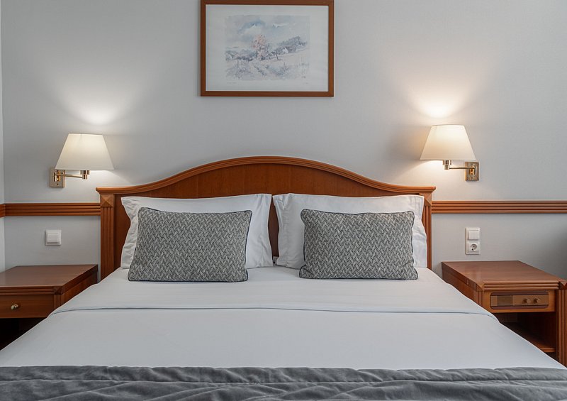Однокомнатный номер состоит из прихожей, ванной комнаты, спальни и отдельного балкона. Ванная комната оборудована качественной итальянской сантехникой. Каждому гостю предоставляется личный набор банных принадлежностей и средств гигиены итальянского производства.