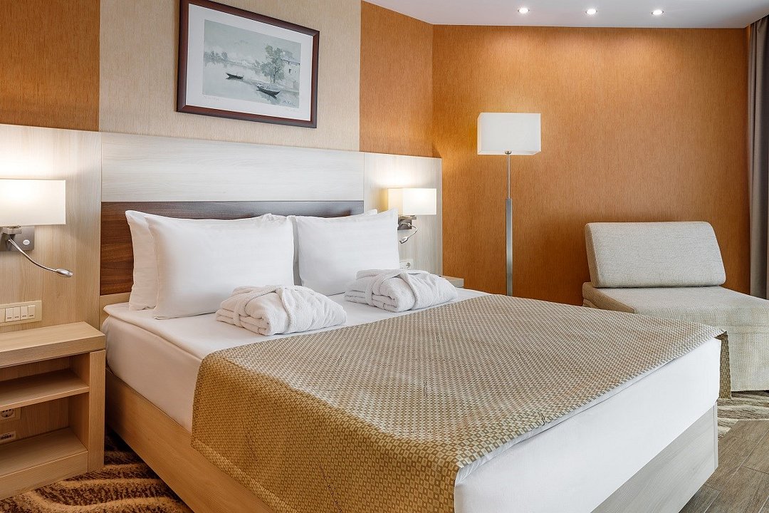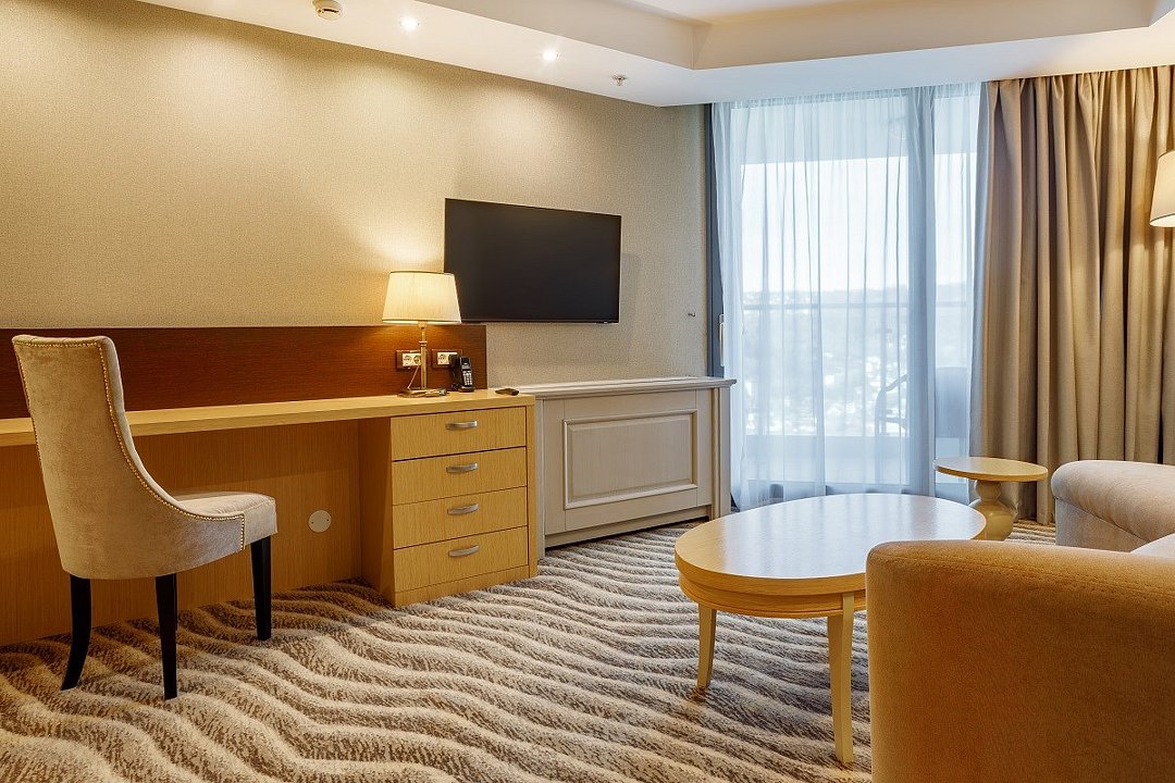 Двухкомнатный номер, площадью 46 кв.м., состоит из спальни и гостиной, идеально подходит для комфортного размещения двух гостей. Из окон всех номеров данной категории открывается панорамный вид на Кавказские горы и на дендропарковую зону Комплекса. Стоимость номера определяется количеством человек, проживающих на основных и дополнительных местах. Дети до 5 лет принимаются бесплатно без предоставления дополнительного места. Дети в возрасте 12 лет (на день заезда) и старше относятся к категории «Взрослые». При размещении на дополнительном месте взрослого - скидка 20% от стоимости основного места; при размещении ребенка - скидка 50%. Расчетный час 12.00 московского времени. Время заезда 14.00 московского времени. Ранний заезд и поздний выезд осуществляются за дополнительную оплату.Услуги и удобства