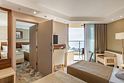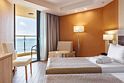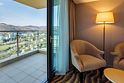 телевизор, кабельное телевидение, телефон, светильник, фен, электронные замки, ванная комната, санузел, банные принадлежности, халаты, банные полотенца, тапочки, балкон, двуспальная кровать, тумбы, стулья, шкаф для одежды, вешалки, письменный стол, багажная тумба, сейф, чайник, раковина, душ, вид на море, туалетный столик, раскладное кресло, мини-холодильник, фанкойлВ гостиничном номере