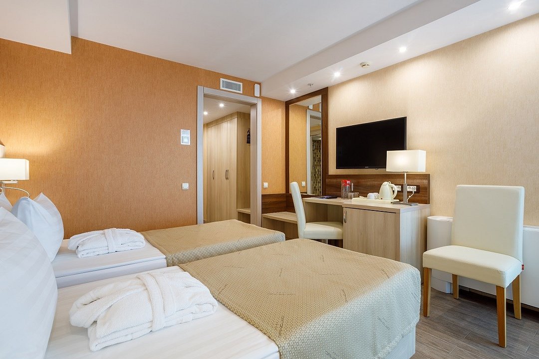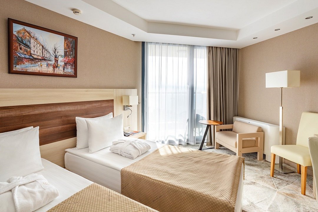 Уютный номер с 2 раздельными кроватями, площадью 24-26 кв.м., предназначенный для комфортного размещения 2-3 гостей. Стоимость номера определяется количеством человек, проживающих на основных и дополнительных местах. Дети до 5 лет принимаются бесплатно без предоставления дополнительного места. Дети в возрасте 12 лет (на день заезда) и старше относятся к категории «Взрослые». При размещении на дополнительном месте взрослого - скидка 20% от стоимости основного места; при размещении ребенка - скидка 50%. Расчетный час 12.00 московского времени. Время заезда 14.00 московского времени. Ранний заезд и поздний выезд осуществляются за дополнительную оплату.Услуги и удобства