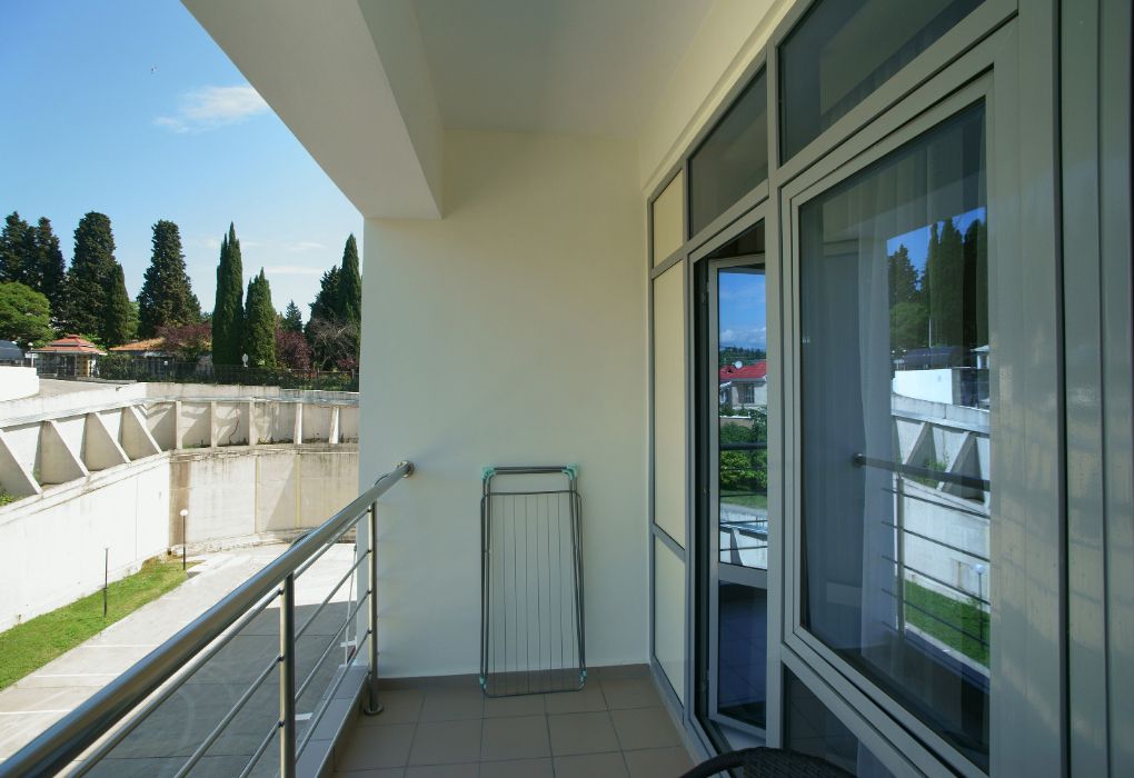 От аэропорта Адлер на автобусе №105 до остановки «Санаторий Известия», далее пересадка на автобус №555 до остановки «Центральные авторемонтные мастерские».
