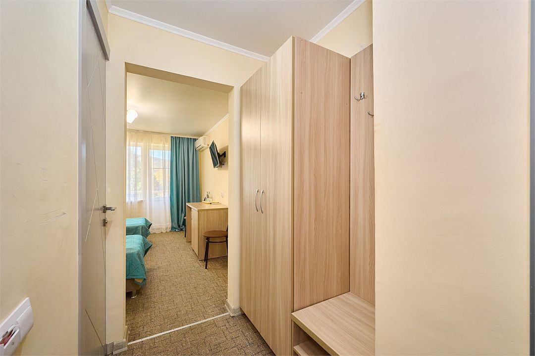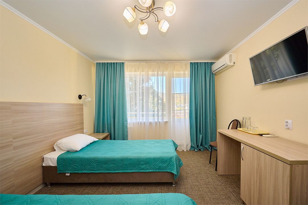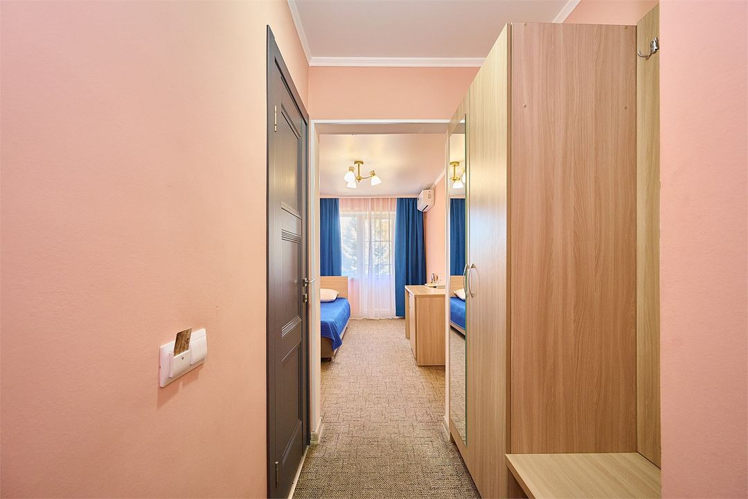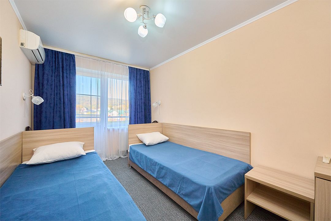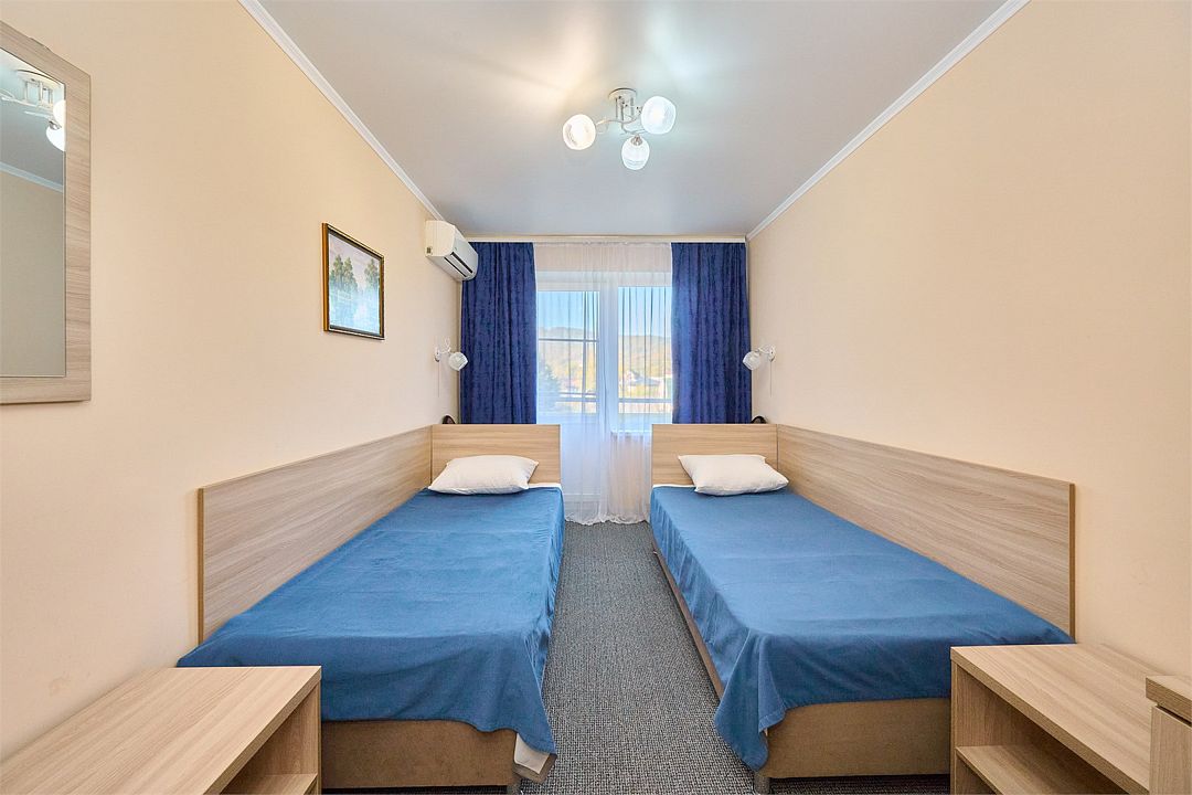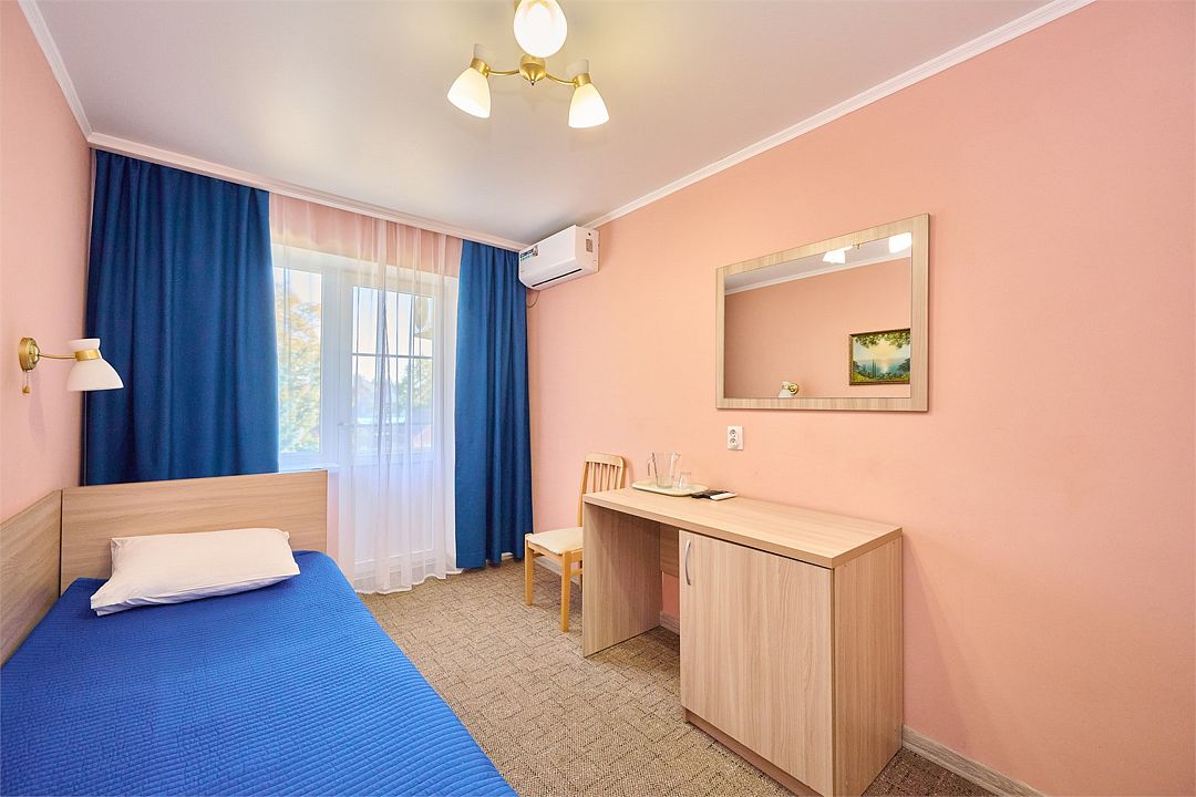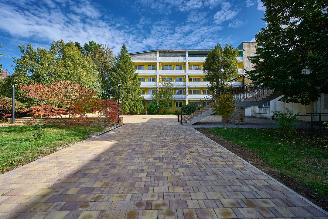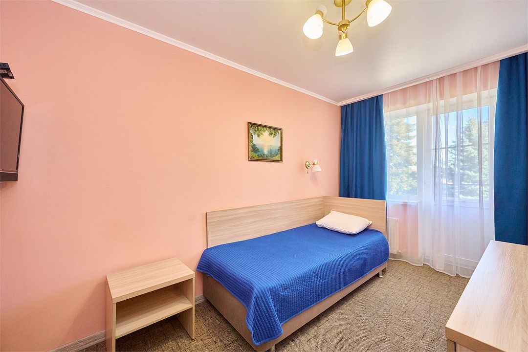 Спальный корпус, лечебное отделение, столовая компактно расположились в одном здании. Номерной фонд санатория разнообразен. Есть одно и двухместные номера эконом-класса, стандартные, а также категории комфорт и люкс.