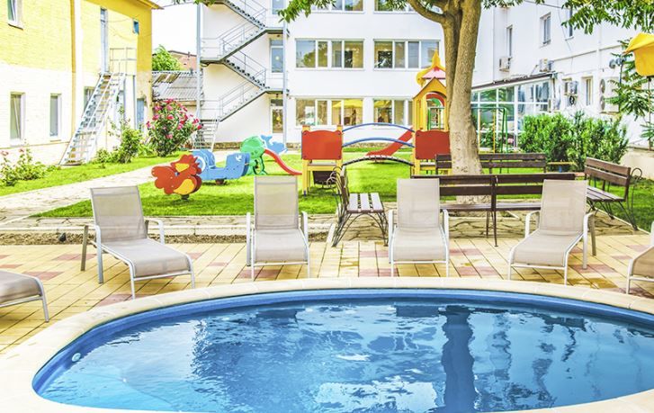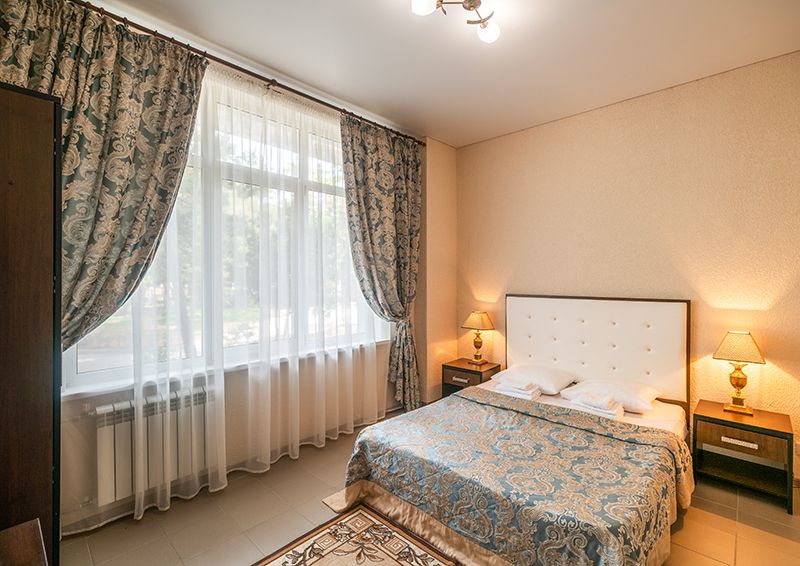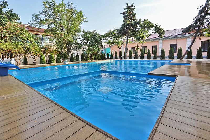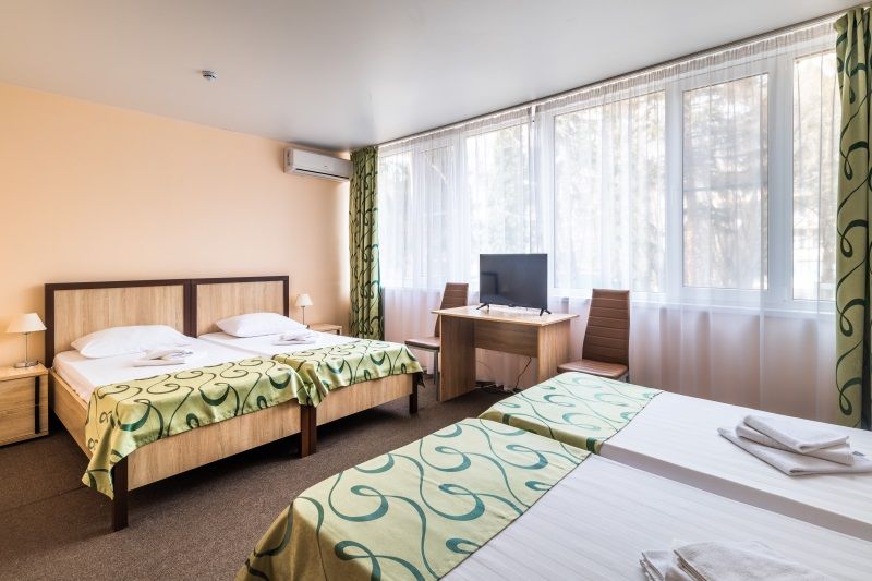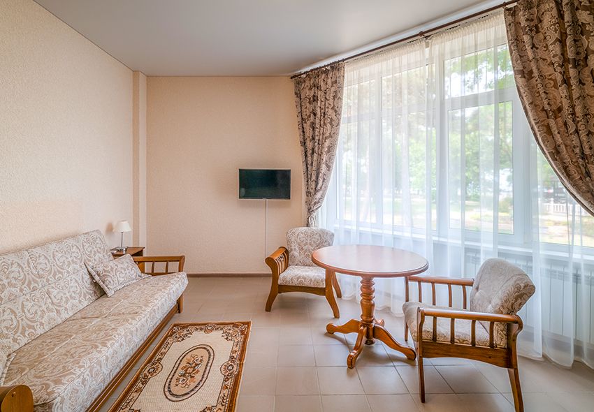 Территория санатория ухожена и окружена цветами и южными деревьями, что создает атмосферу спокойствия и комфорта. Гостям предлагаются обновленные и уютные номера, а в столовой организовано качественное питание. На территории доступен Wi-Fi. К услугам отдыхающих — финская баня с бассейном, массажный кабинет и СПА-процедуры, детская игровая площадка, кинотеатр под открытым небом, тренажерный зал и бильярд. Для детей и взрослых регулярно проводятся анимационные мероприятия, пользующиеся большой популярностью.