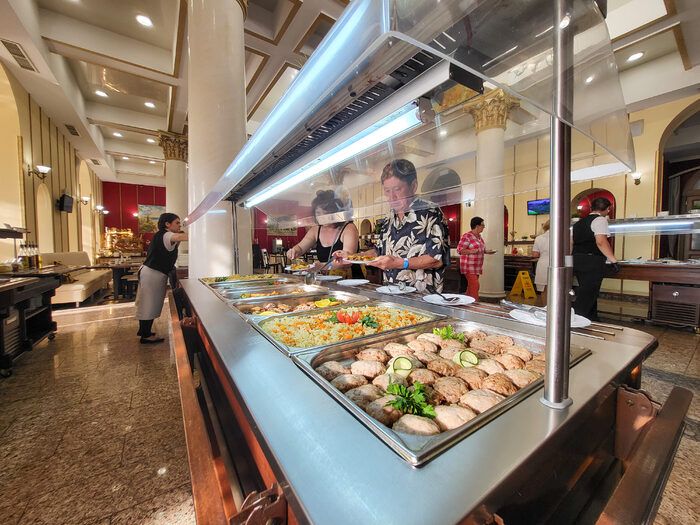 Ресторан предлагает своим гостям широкий ассортимент блюд в формате шведского стола, включая изысканные кулинарные творения, созданные по рецептам европейской и русской кухни. Особое внимание здесь уделено детям: для маленьких гостей предусмотрена специальная «Детская шведская линия», где предлагаются вкусные и безопасные деликатесы.