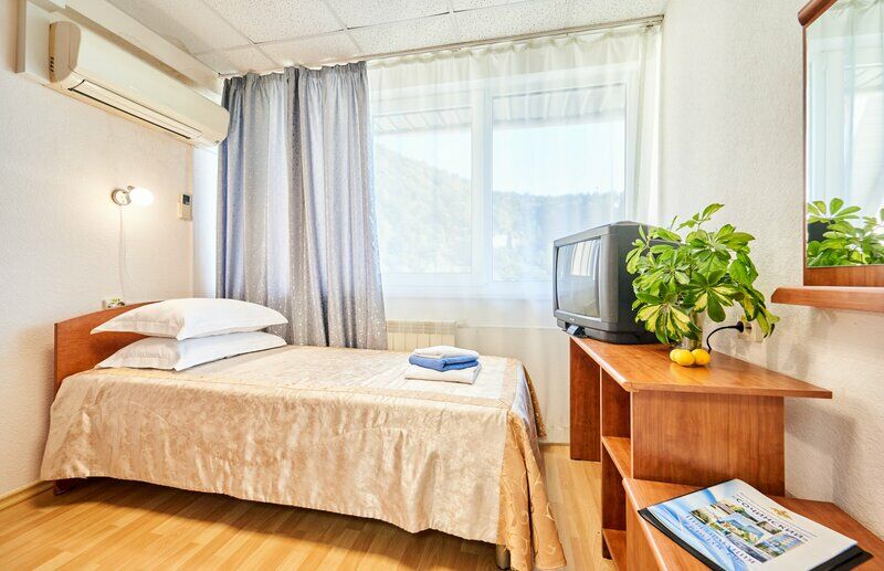Лечение и оздоровлениеДостоинстваЕсли вам нужен активный отдых, то этот санаторий точно не подойдёт. Если вам нужно подлечиться, то этот санаторий тоже не подойдёт. Для чего подходит этот санаторий, так это для отдыха от суеты. Санаторий располагается в долине, рядом располагается море. Расположение очень понравилось, воздух чистый. Нет духоты, во всех номерах есть кондиционер, пляж к сожалению каменистый. В целом, места хватает всем. Персонал относится хорошо, номера убираются каждый день. Понравилось то, как готовят повара.