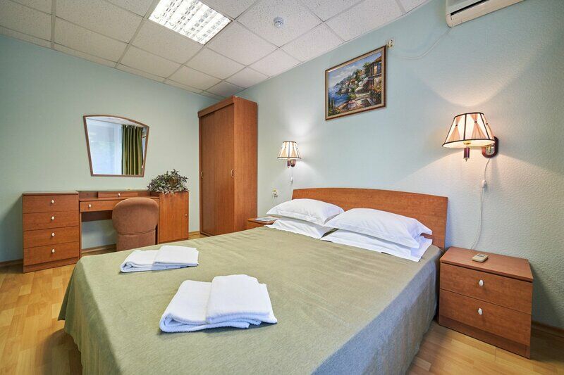 Лечение и оздоровлениеДостоинстваМы семьёй отдыхали в этом санатории, нам предоставлен двухместный номер, ребёнку дали раскладушку. Конечно, для троих человек этот номер немного маловат. В номере есть вся необходимая мебель и техника, кондиционер. Санузел был совмещенный, территория санатория ухоженная, есть красивые парки и площадки, имеется тренажерный зал и библиотека. Мой отдых был без лечения, кормили низкокалорийно, что обычно для лечебного учреждения.