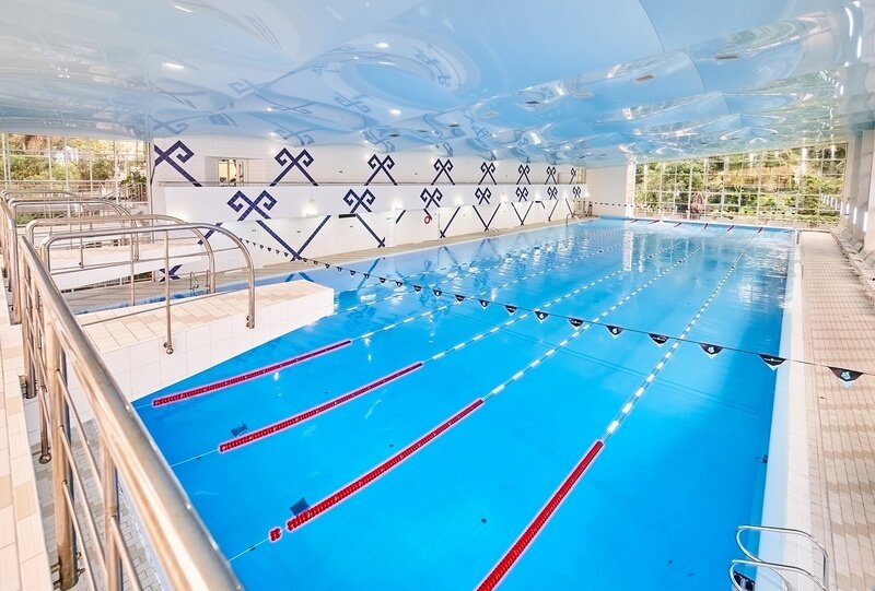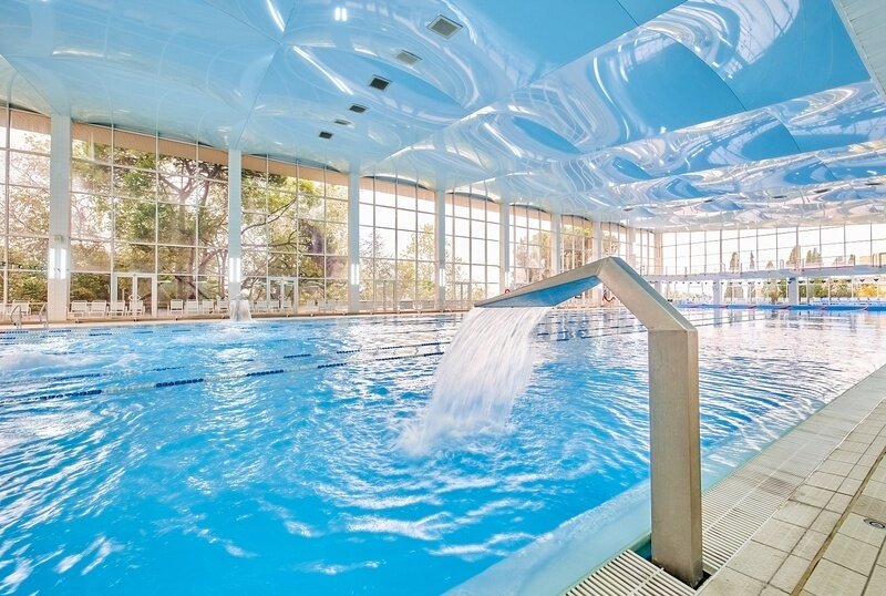 Крытый пресноводный бассейн площадью в 100 кв. метров функционирует в течение всего года. Любители спорта имеют возможность посещать тренажёрный и ЛКФ-залы. На свежем воздухе для них доступны площадки для игры в волейбол, бадминтон, мини-футбол, теннисный корт. К услугам желающих – прокат спортивного инвентаря, оборудование для настольного тенниса, занятия по аквааэробике и аэробике с инструктором.