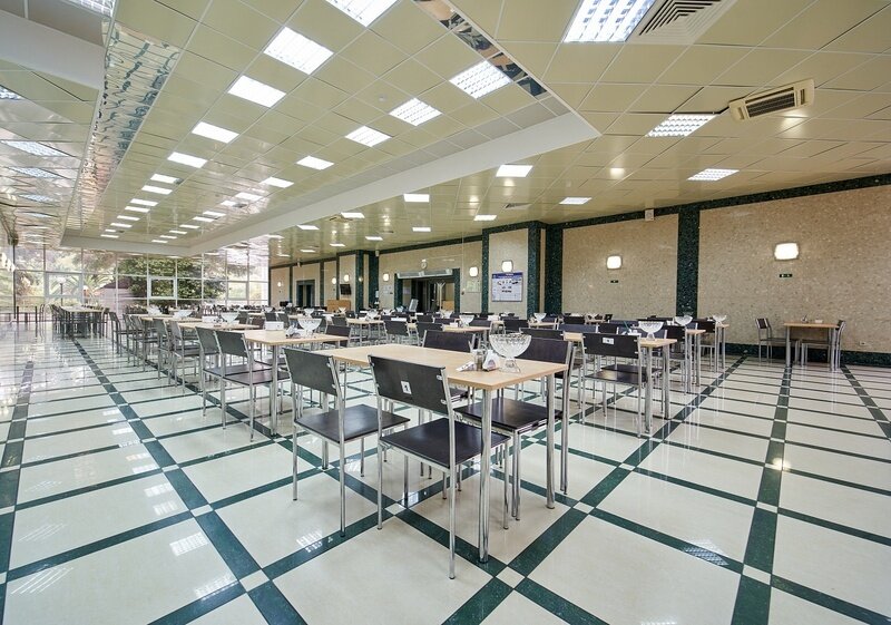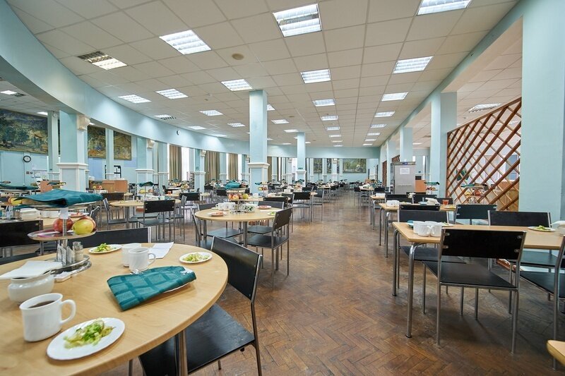 Трёхразовое питание постояльцев санатория осуществляется в столовой здравнице по схеме «меню-заказ», кухня – русская. Кроме общей столовой на территории комплекса в отдельном помещении, есть ещё одна отдельная, в жилом корпусе и фитобар в здании лечебницы.