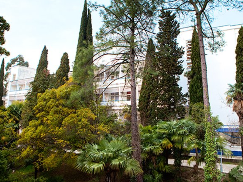 Огромная территория военного санатория «Сочинский» площадью в 26 га, находящаяся в дендрарии, спускается к морю террасами и полна массы приятных уголков, аллей, переходов. Роскошная субтропическая растительность, покрывающая её, в сочетании с горно-морским воздухом целительна сама по себе.