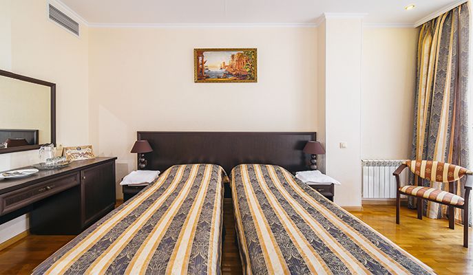 Путешествие с семьейВсё понравилосьБыли семьёй в начале ноября, путёвки полный пансион, со стандартным лечением. Всё понравилось: кормят хорошо, разнообразно, каждый день есть на выбор и мясо,и птица и рыба, на гарнир крупы, овощи и макароны, разные салаты, по утрам всегда есть каши, запеканки, омлеты, также каждый день в меню йогурт, кефир, компот, сок, кисель, кофемашина с вкусным кофе - одним словом голодными мы не были, ни разу даже ничего не покупали из продуктов, только зря включили в номере холодильник в первый день) в номере есть все необходимое, кулер на этаж с холодной и горячей водой, уборка проводилась, полотенца меняли - не к чему придраться. Лечение в стандартной путевке минимальное (ванны, массаж, физ.кабинет), если есть конкретная цель подлечить здоровье по какой-то части, то стоит взять путёвку по спец.программе или докупить необходимые процедуры. Персонал приветливый, есть детская комната, по вечерам дискотеки) нам всё понравилось, если ищите каких-то изысков, мидии и устриц на обед, то вам не сюда, а остальное всё здесь есть!