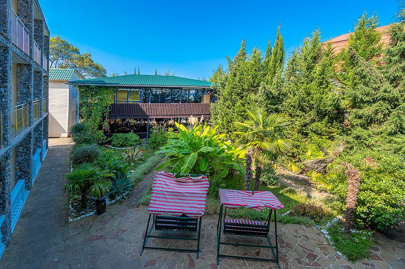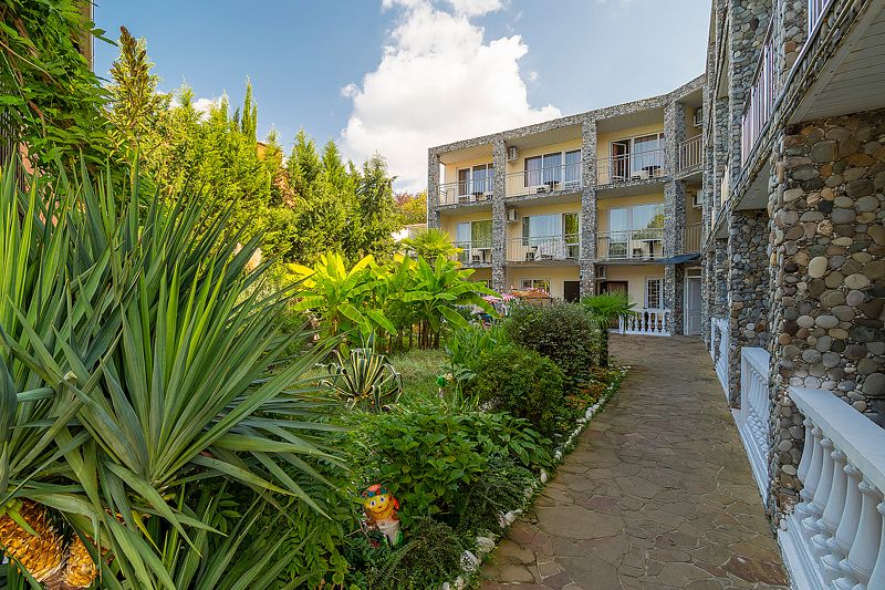 Комплекс состоит из одного основного корпуса и семи комфортабельных коттеджей, расположенных на территории в 10 минутах ходьбы от моря. Всего в комплексе 42 номера, что позволяет одновременно разместить до 100 гостей.