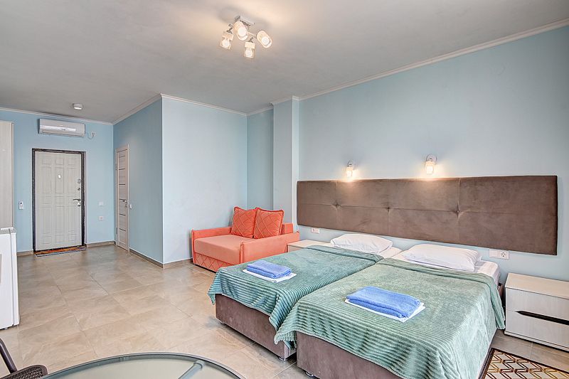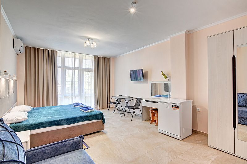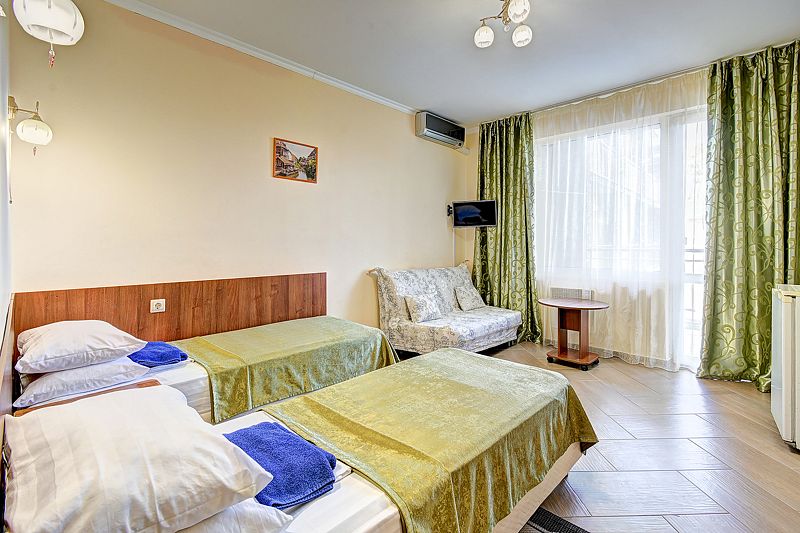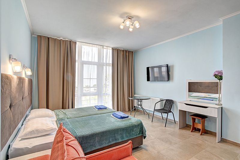 С/у, душ, ТВ, Х, К, TWIN или DBL, балкон с видом на море.
