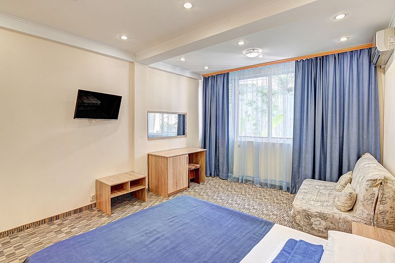 В номерах есть всё необходимое для комфортного отдыха: кондиционер, телевизор, холодильник и санузел с душем, умывальником и туалетом. Смена полотенец происходит раз в три дня, а постельного белья — раз в пять дней или по запросу.
