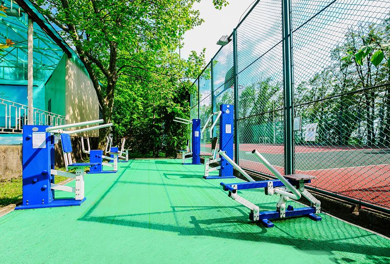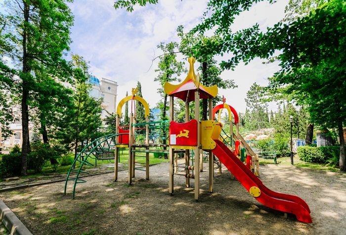Пляж в пешей доступности: 350 метров по терренкурной тропе или 400 ступеням. Также имеется крытый бассейн с пресной водой, тренажерный зал с современным оборудованием, специально оборудованные спортивные площадки. Предоставляется аренда спортивного инвентаря. Для юных гостей работает детская игровая комната с профессиональным воспитателем.
