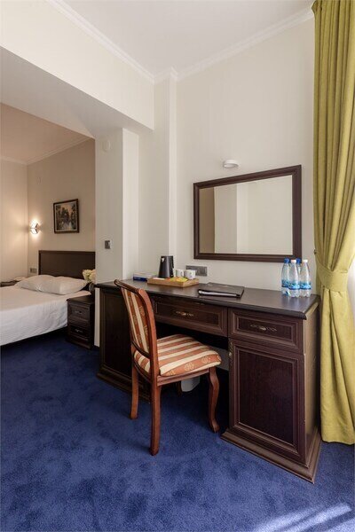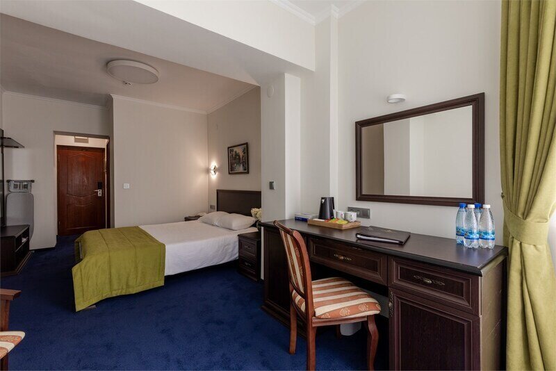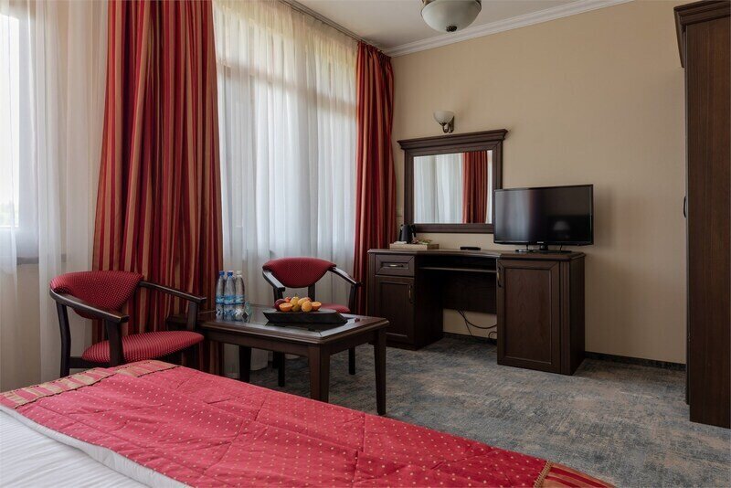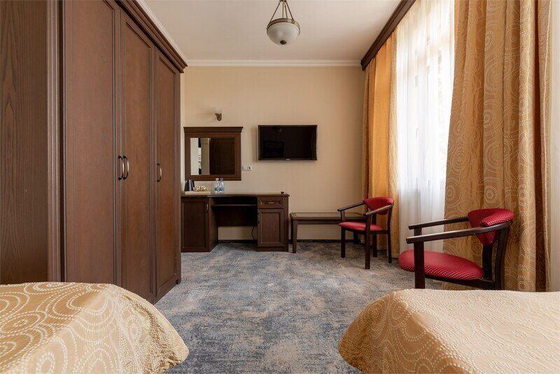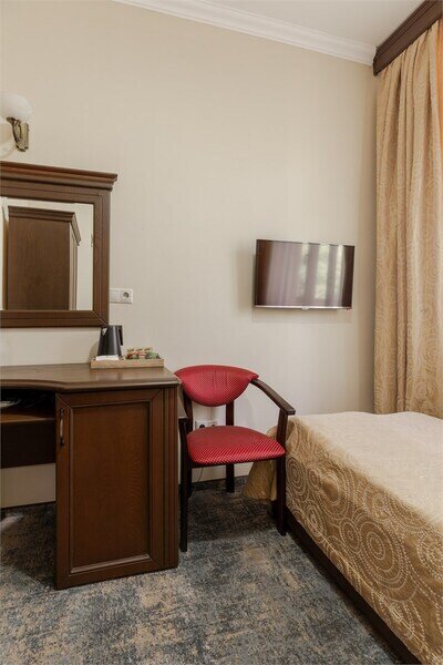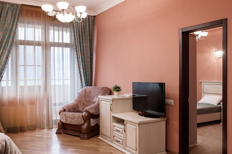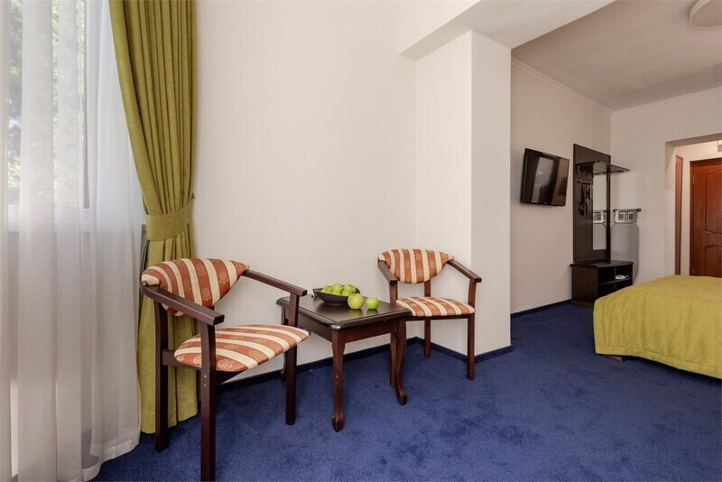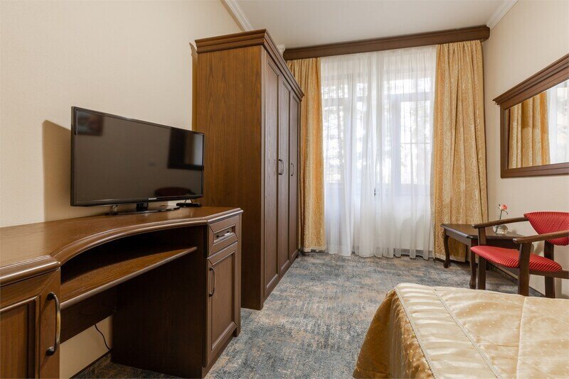 2 взрослых на основном местеВключен завтрак, обед и ужинОздоровительная путевкаПодробнее Проживание в выбранной категории номера - кровать, шкаф, письменный стол, тумбочки, стулья, холодильник, сейф, кондиционер, ТВ, телефон, набор посуды, фен, косметические средства, зубной набор, тапочки, полотенца; Полный пансион; Лечение по показаниям (Мацестинские ванны от 14 дней); Wi-Fi 300 Мбит\с в номерах всех категорий; Пользование пляжным комплексом (в период среднего и высокого сезонов); Посещение спорткомплекса (тренажерный зал, сауна, бассейн); Посещение детской площадки; Парковка; Историко-дендрологическая экскурсия по территории санатория; При проживании на дополнительном месте лечение входит в стоимость. -