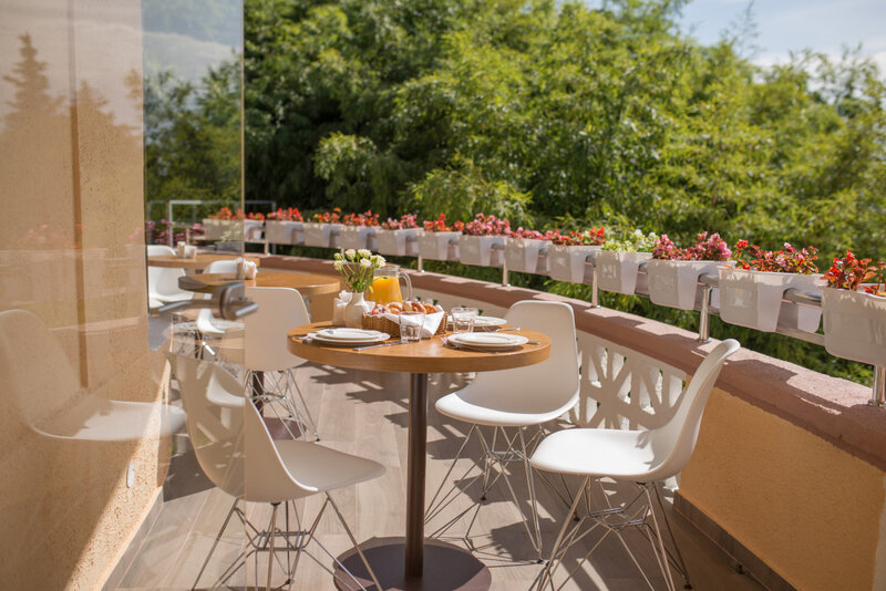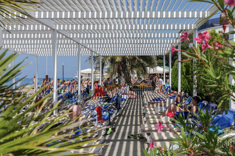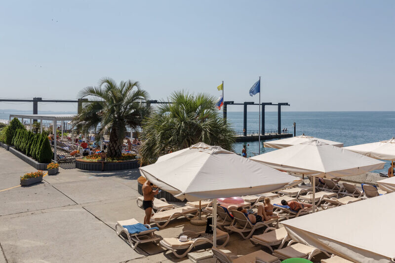 Для комфортного и незабываемого отдыха гостей предлагаются 162 современных номера различных ценовых категорий (включая коттеджи) с высокоскоростным Wi-Fi, с видом на Чёрное море и панораму города. Собственный пляж с мелкой галькой и обширной теневой зоной, оборудованный шезлонгами, душевыми находится в пешей доступности.