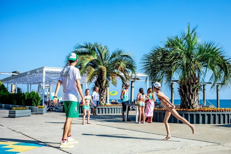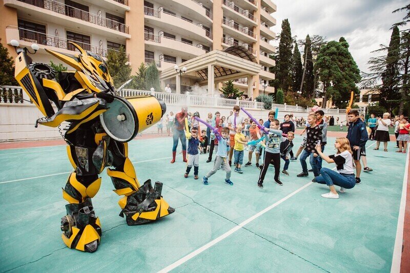 В санатории есть профессиональный коллектив аниматоров, более 30 тематических костюмов, разработана увлекательная программа как для детей, так и для взрослых. Организовано вкусное, качественное 3–х разовое питание по системе «шведский стол». Предоставляются услуги трансфера от аэропорта и ж/д вокзала.