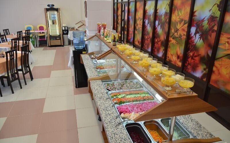 Питание гостей представлено двумя типами – заказное и шведский стол. Каждый вид питания сбалансирован и составлен с учетом диетологических санаторных норм. Желающие могут обратиться к диетсестре, которая поможет в выборе и составлении заказного меню.