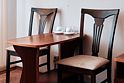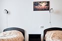 две односпальные кровати, 2 тумбочки, 2 кресла, журнальный столик, телевизор, посуда, общие на две комнаты: душевая и туалетная комната, встроенный шкаф для одежды, холодильник, чайник, фен, гладильная доска, утюг.