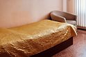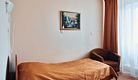 односпальная кровать, кресло, журнальный стол, тумбочка, телевизор, посуда, общие на две комнаты: душевая и туалетная комната, встроенный шкаф для одежды, холодильник, чайник.