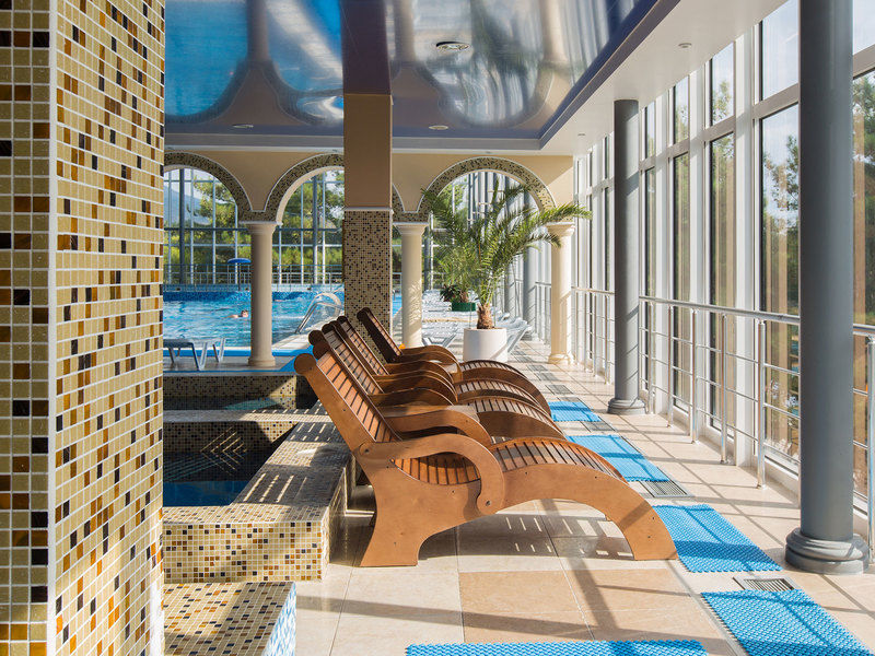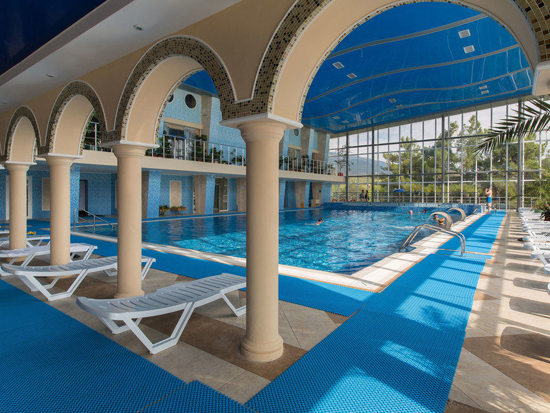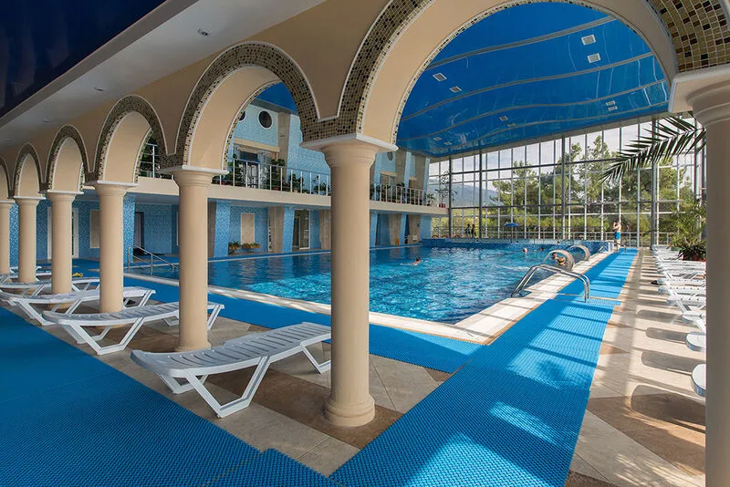 Для гостей комплекса открыт большой бассейн: сезонный, пресноводный, с подогревом. В банном комплексе санатория работают бани: русская парная, римская, финская и хамам, инфракрасная сауна, джакузи и бассейны с ледяной и горячей водой. В spa-центре клиенты принимают мультифункциональныеи сухие углекислые ванны, посещают соляную пещеру. В санатории “Ай-Даниль” в Крыму есть лимфодренажный, косметологический, массажный и косметологический кабинеты, салон кислородоаромотерапии, фитобар.
