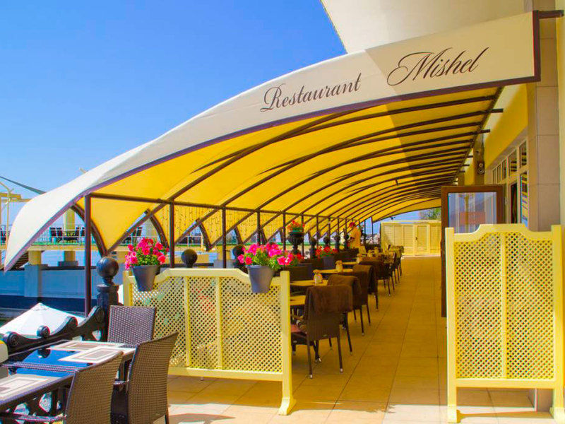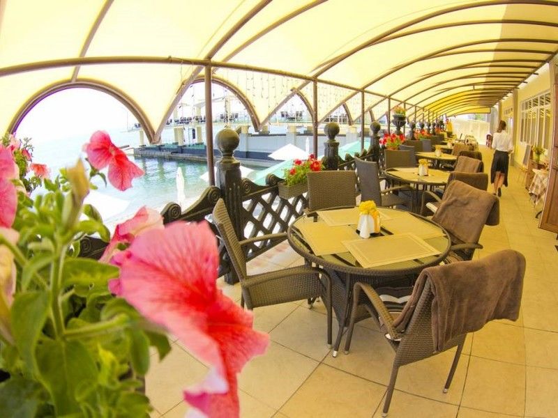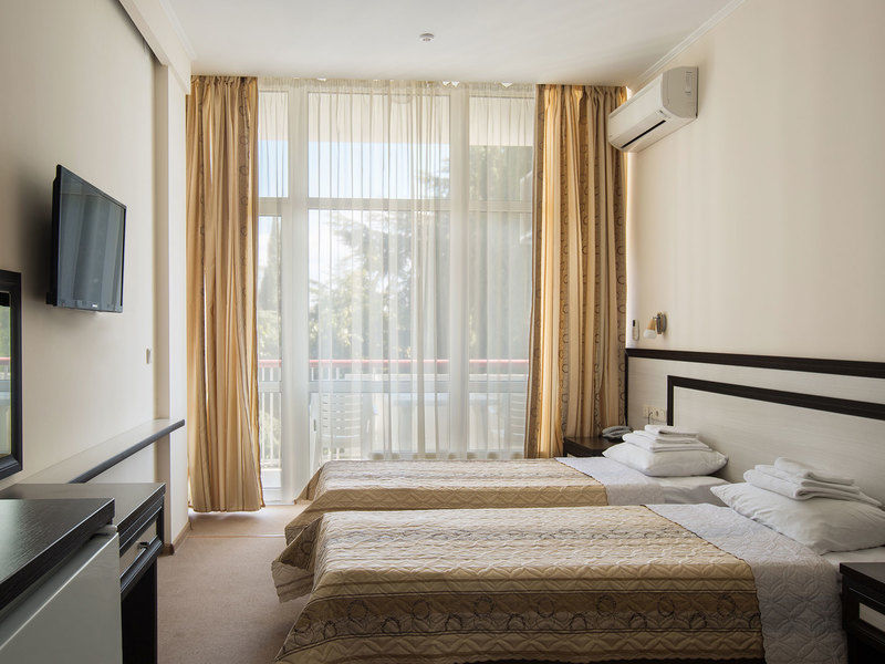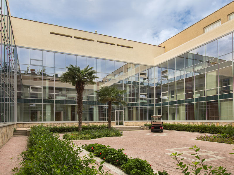 На благоустроенной территории комплекса площадью в 19,4 га расположены два жилых здания санатория: 16-этажный «Главный» корпус (с номерами классов «Люкс», «полулюкс» и «стандарт») и 3-этажный«Морской» корпус с «люксами». В них можно одновременно разместить более 570 человек. Отдельный 4-этажный лечебный корпус имеет крытый переход, соединяющий его с «Главным».