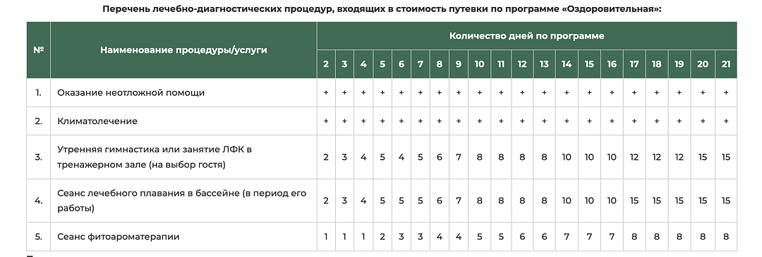 - Санаторно-курортное лечение по Оздоровительной программе.