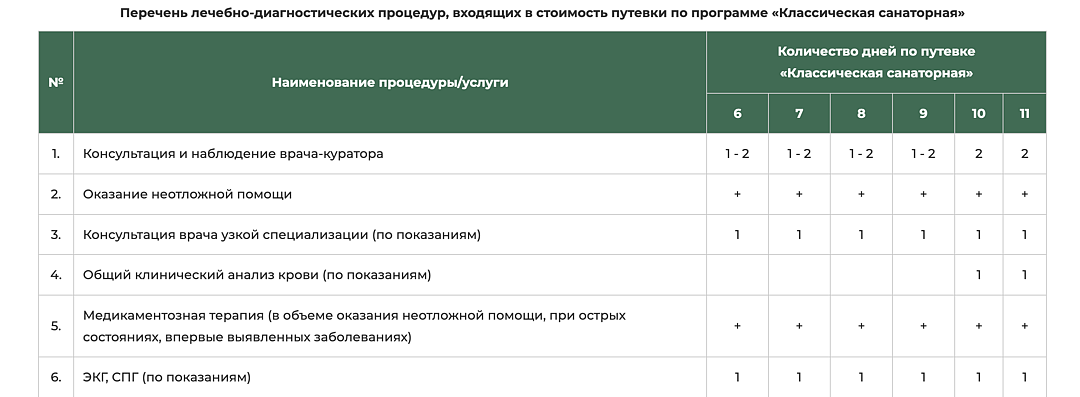 - Санаторно-курортное лечение по Классической санаторной программе.