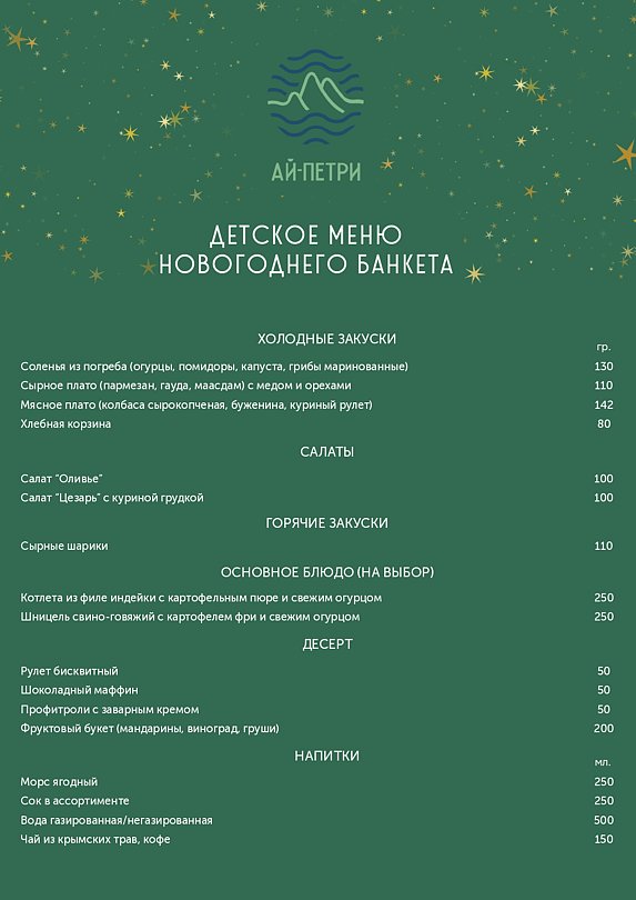 2 взрослых на основном местеВключен завтрак, обед и ужинКрымские каникулы "Оздоровительный" -15%ПодробнееВ стоимость включено: