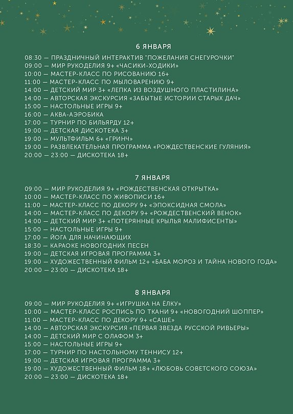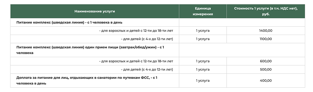 - Питание полный пансион по системе «шведский стол» (завтрак, обед, ужин).