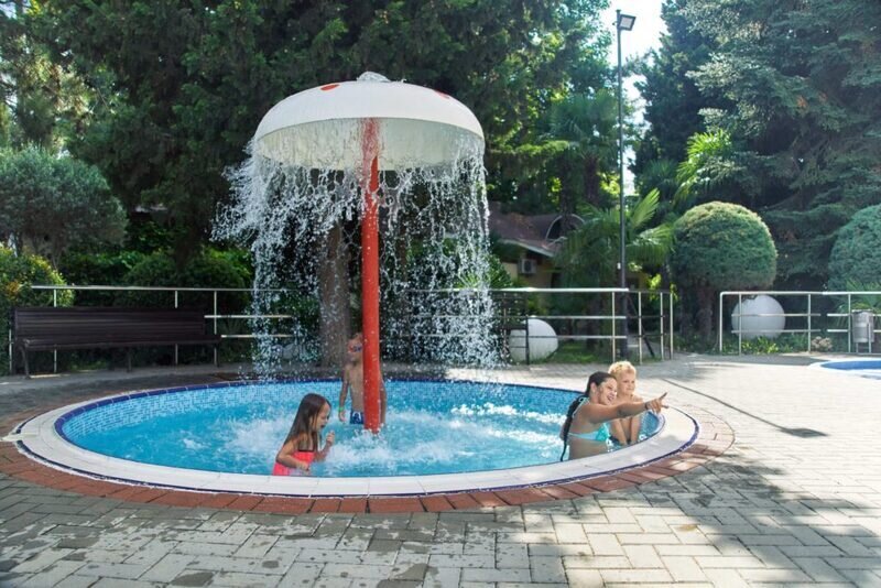 Ближайший мелко-галечный пляж находится на расстоянии 450 метров от жилых корпусов.