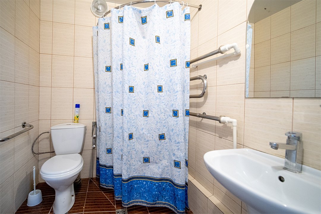 Одноместный номер расположен в блоке с двухместным номером. Санузел, раковина и душ — один на блок.