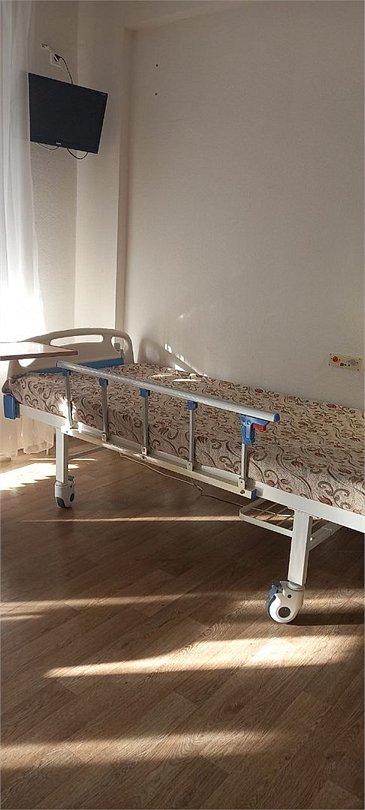 Площадь номера — 24 м², площадь санузла с душем — 4,4 м², кровать, кнопка вызова дежурного медперсонала.