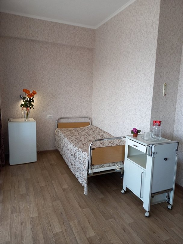 Площадь номера — 24 м², необходимая мебель для проживания четырех человек, в том числе кровати, прикроватные тумбочки; телевизор, холодильник, три полотенца на каждого пациента, раковина. Санузел и душ на этаже.