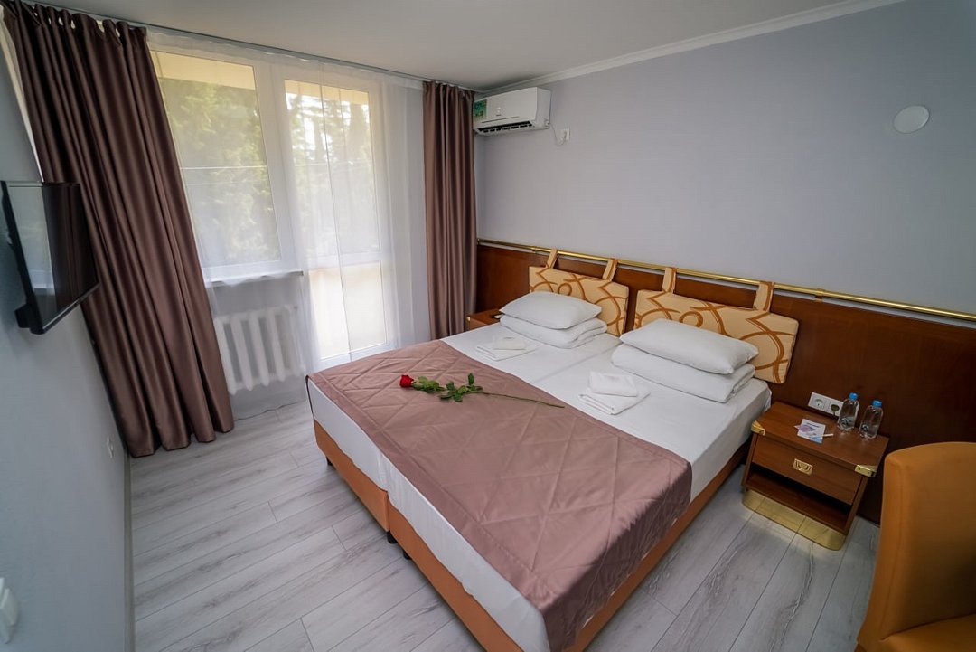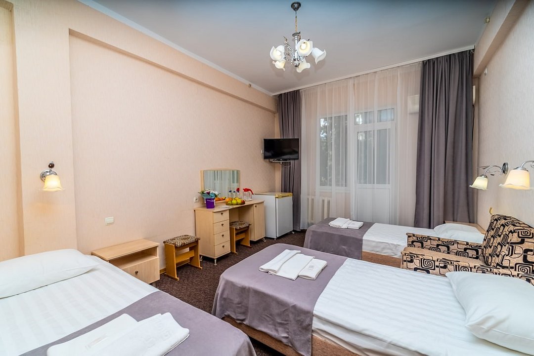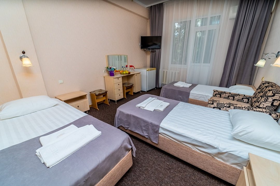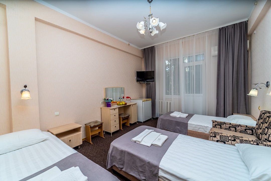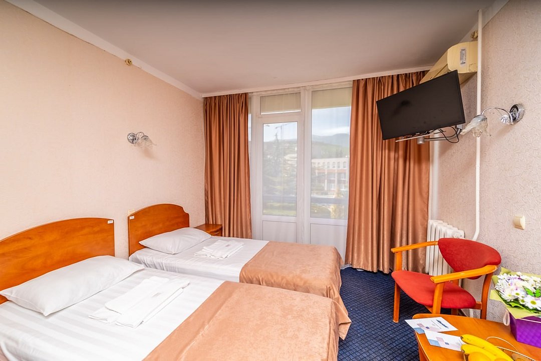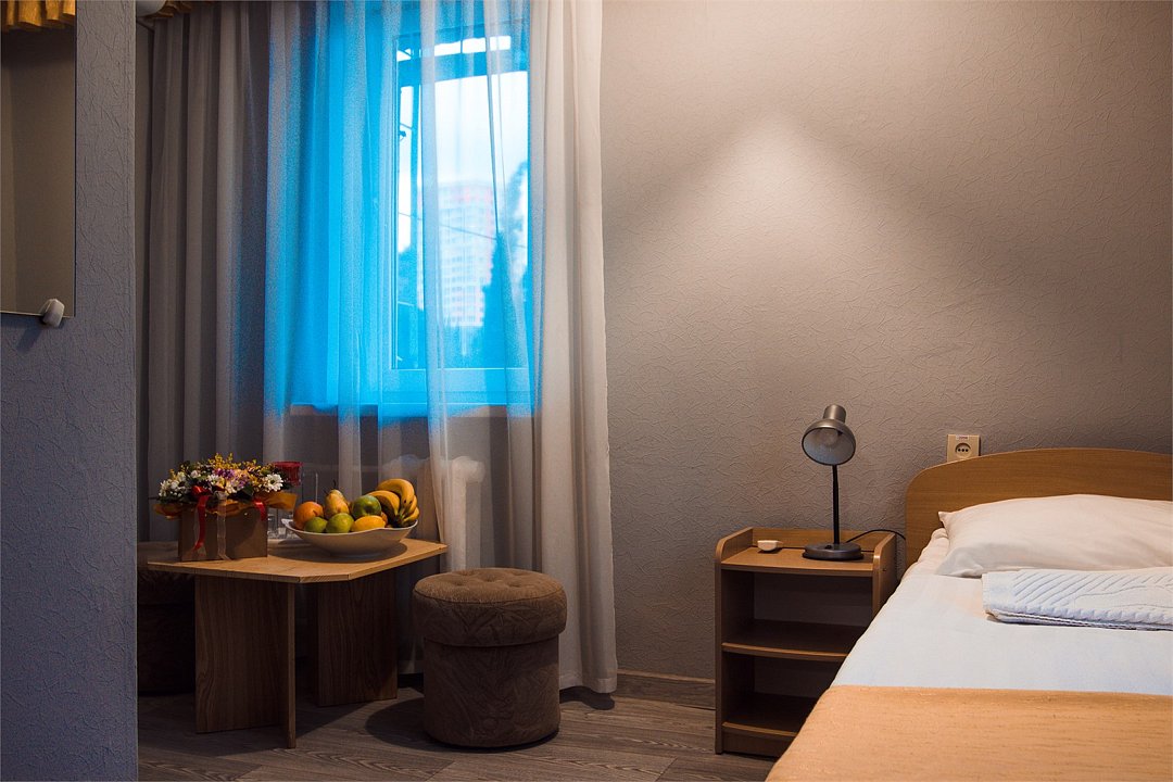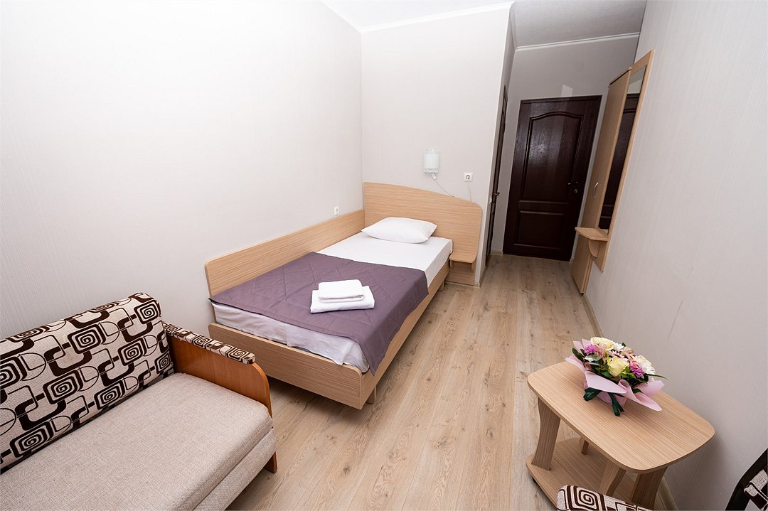 Лечение и оздоровлениеДостоинстваНеделю жили мы здесь с мамой. Место хорошее в целом, ремонт, когда мы приехали, почти был закончен. Окна заменили и мебель. Стандартные номера, чистые, ничего необычного не увидели. 15 минут идти до моря быстрым шагом. Но есть и автобус, который туда возит. Пляж понравился, галька мелкая.